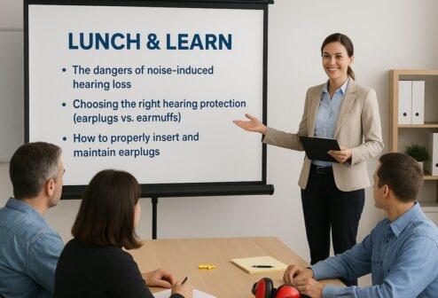 We specialize in hearing tests, professional ear wax removal, custom ear plug impressions, and on-site PPE and hearing loss education. Founded by a registered nurse with over 40 years of medical experience, we deliver convenient, same-week service directly to workplaces, helping companies keep their teams hearing clearly and working safely.