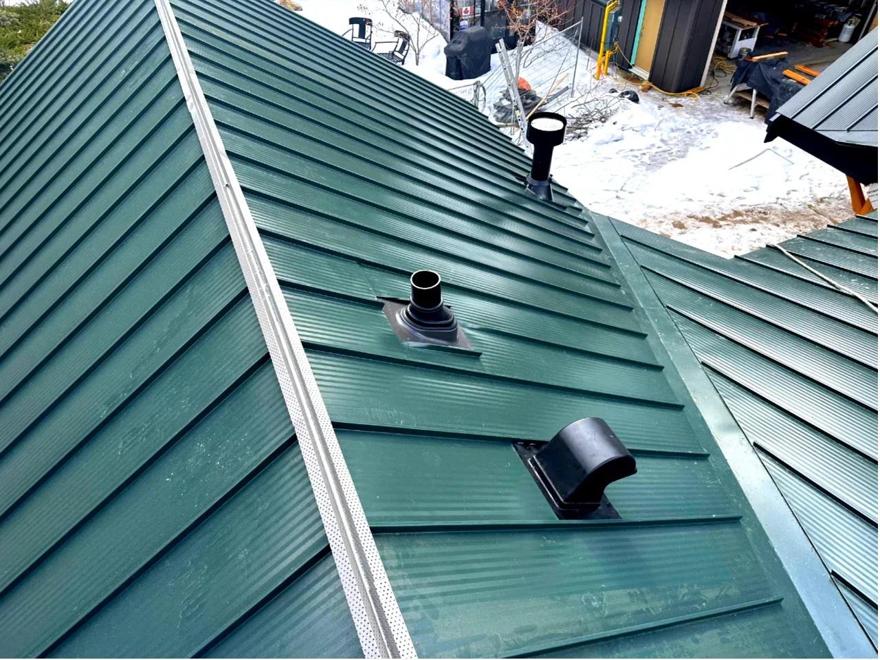 Our core expertise is premium standing seam metal roofing with mechanical lock — offering exceptional durability, a watertight seal, superior wind uplift resistance, and long-term performance in harsh Canadian weather. We use trusted 22 and 24-gauge Canadian steel, and fade-resistant paint coatings backed by manufacturer warranties.