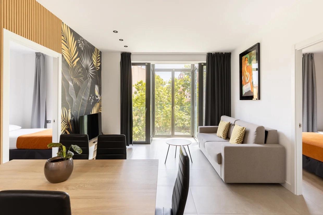 Cosmo Consell de Cent offers stylish and well-equipped apartments in the heart of Barcelona, just 700 meters from Universitat Square and 300 meters from Urgell Metro Station, providing quick access to Las Ramblas and Plaza de Catalunya. Nestled in the quietest part of the iconic Eixample district, the property features 3 elegant two-bedroom duplexes, 10 two-bedroom superior apartments and 15 two-bedroom apartments. Each unit boasts a spacious living area seamlessly integrated with a fully equipped kitchen and ding area. Designed with luxury and comfort in mind, the apartments offer high-quality appliances, soft bedding, and an elegant ambiance to ensure an unforgettable stay. Guests can enjoy proximity to some of Barcelona’s finest restaurants and renowned landmarks such as Passeig de Gràcia and Gaudí’s masterpieces.