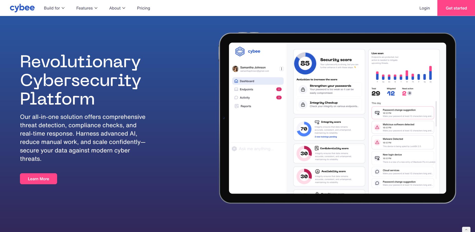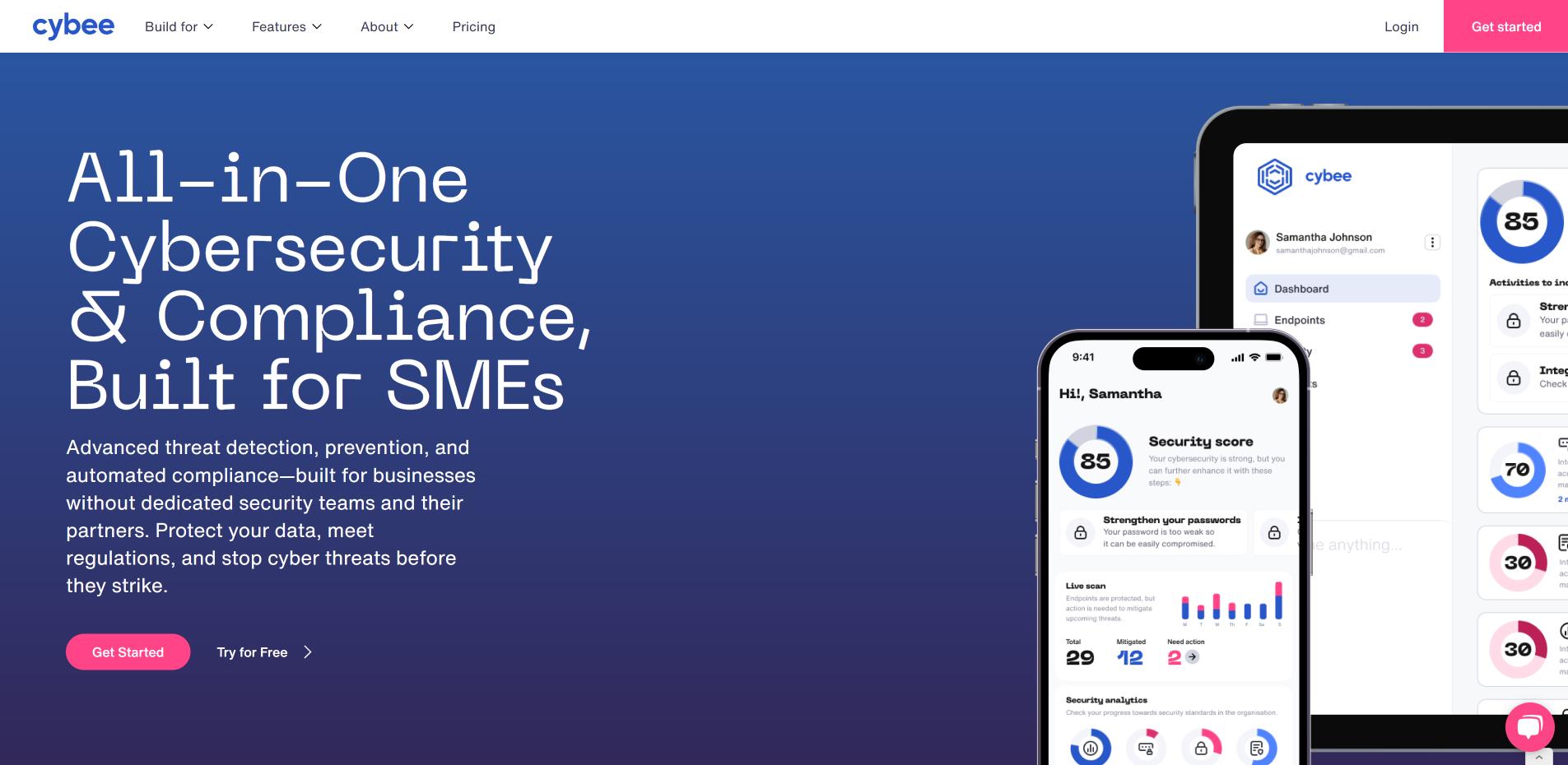 Cybee.ai brings effortless security to SMBs by eliminating the need for manual configurations and IT oversight. You get built-in compliance management, automated threat detection, and a streamlined dashboard—all optimized for non-tech users and fast-growing companies.