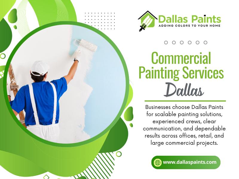 Since 2009, Dallas Paints has been the trusted choice for homeowners and businesses searching for local painters near me. Our family-run residential painting company and commercial painting service deliver interior and exterior excellence—precise prep, low-odor finishes, and tidy jobsites. From color consulting and trim work to wallpaper removal and installation, cabinet refinishing, and drywall repair near you, our quality painters bring your vision to life. Need an interior painter for bedrooms and kitchens or exterior house painters for long-lasting curb appeal? Count on our pro painters Dallas for clear estimates, reliable scheduling, and results that look beautiful and endure. Proudly Serving Dallas, Plano, Fort Worth and beyond Texas.