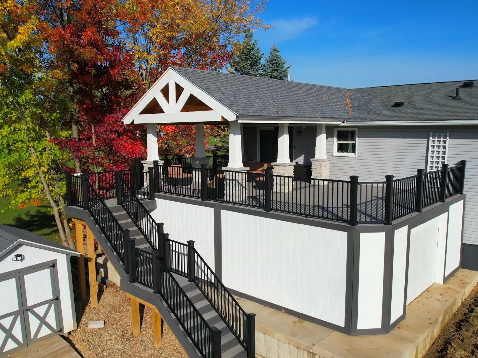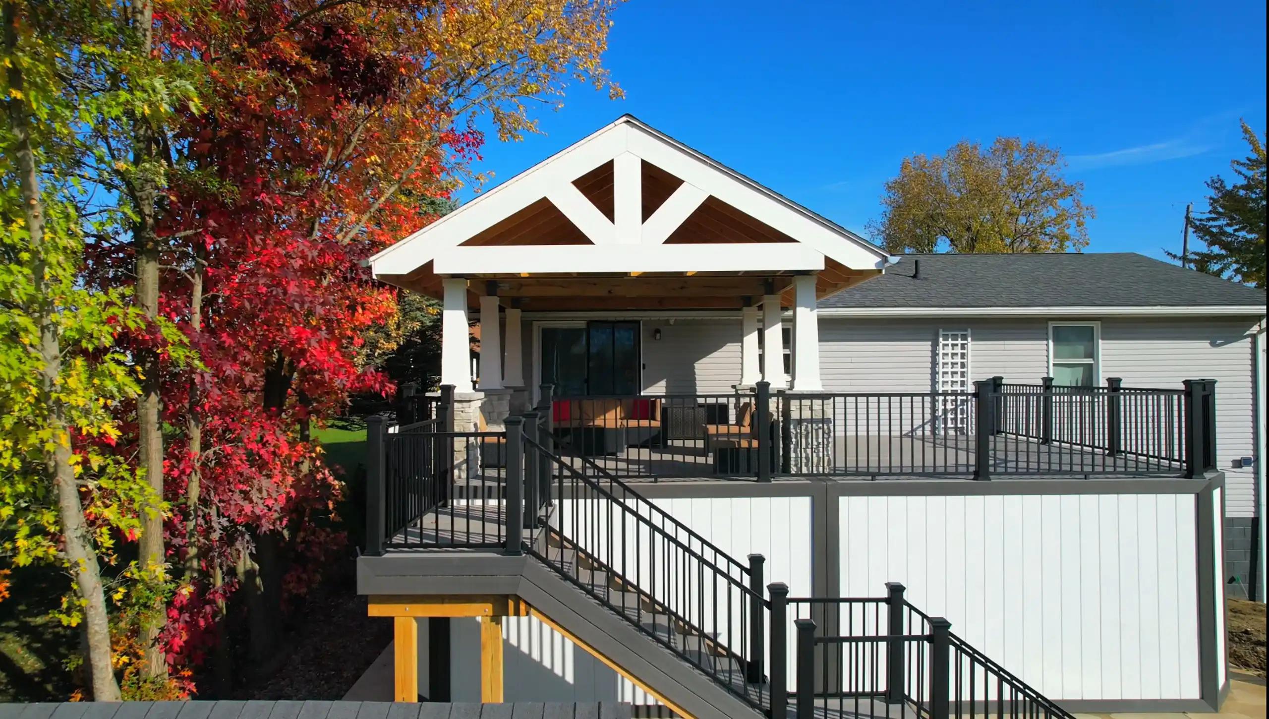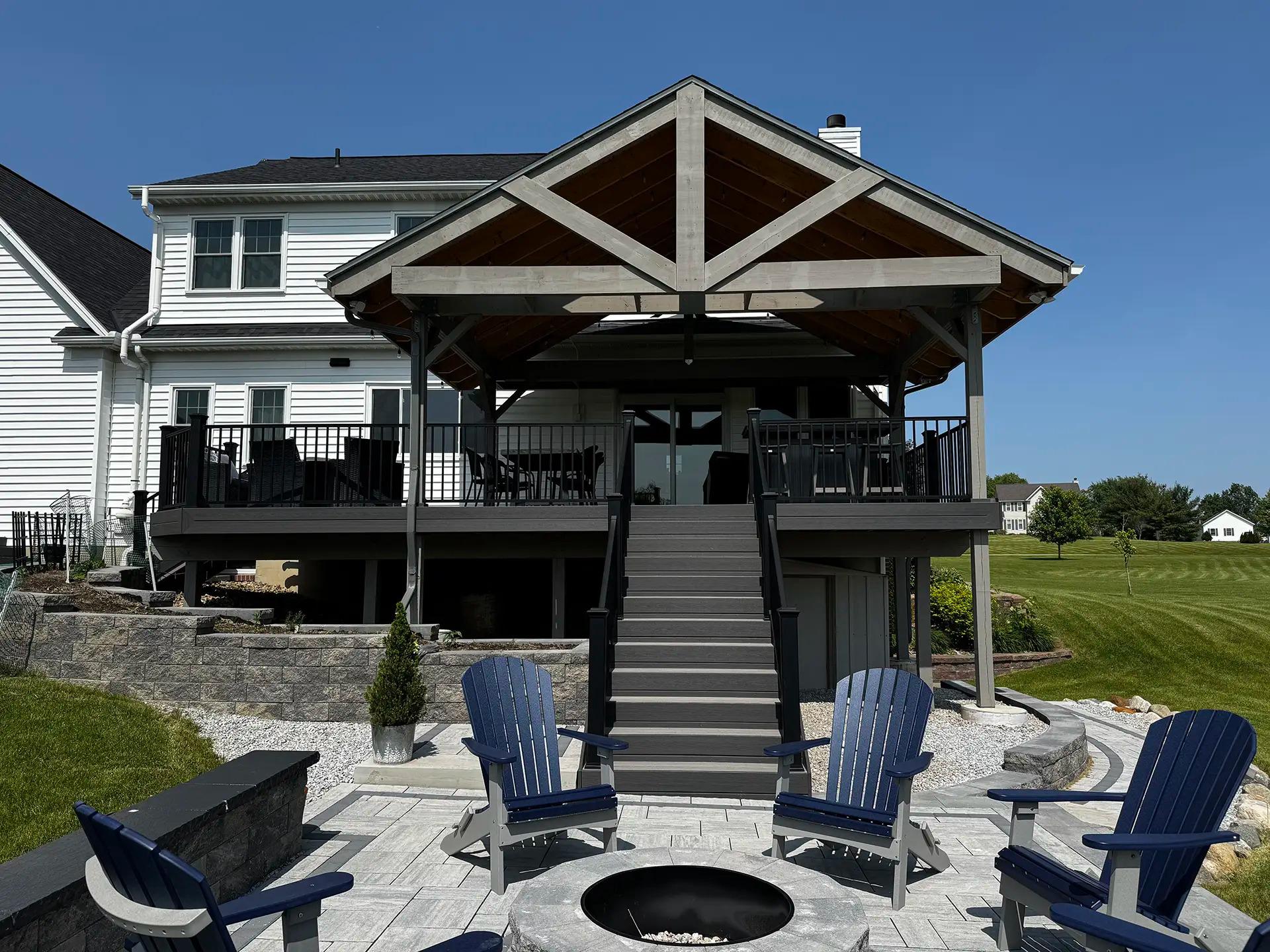 Deck By Design builds long-lasting outdoor spaces for homeowners across Northeast Ohio. We specialize in custom decks, including pool, curved, and multi-level designs, as well as composite and wood decking, deck resurfacing, and detailed inlays. Our team also creates pavilions, gazebos, pergolas, trellises, covered and screened porches, outdoor kitchens, patios, paving, lighting, railings, under-deck waterproofing, and fences. We proudly serve Chesterland, Chardon, Burton, Middlefield, Hunting Valley, Novelty, Bainbridge, Parkman, Russell, South Russell, Aquilla, Thompson, Montville, Troy, Willowick, and Wickliffe.