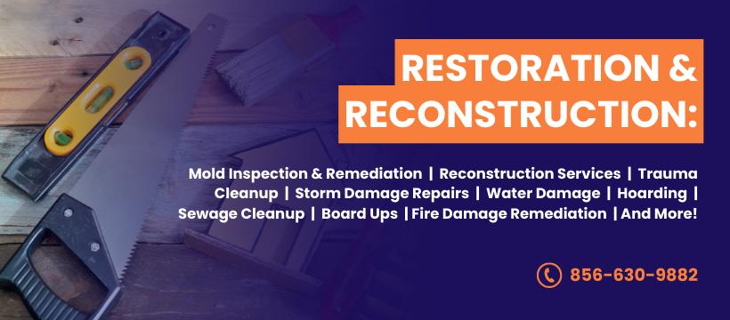 We Do It All: Water Damage, Mold Removal, Storm Damage and Reconstruction Serving Moorestown, Riverside, Cherry Hill & All Of South Jersey If you are need of emergency water extraction, mold remediation or cleanup and repair after a storm, you’re in the right place! All our work is backed by our quality craftsmanship and dedication to YOUR satisfaction. We can be at your property within 60 minutes and are available 24/7 for your emergency restoration needs. Call us or complete the free estimate quote below. We are happy to answer any of questions!