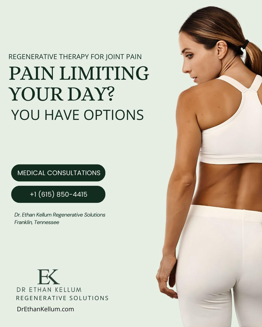 Dr. Ethan Kellum specializes in regenerative and functional medicine, helping patients reduce orthopedic pain, autoimmune issues, fatigue, and improve weight loss, sexual wellness, HRT/BHRT, TRT, sports injuries and hair/cosmetic health. His personalized, evidence-based approach focuses on therapy, proactive wellness, and long-term vitality.
