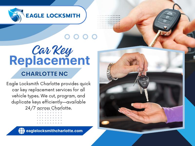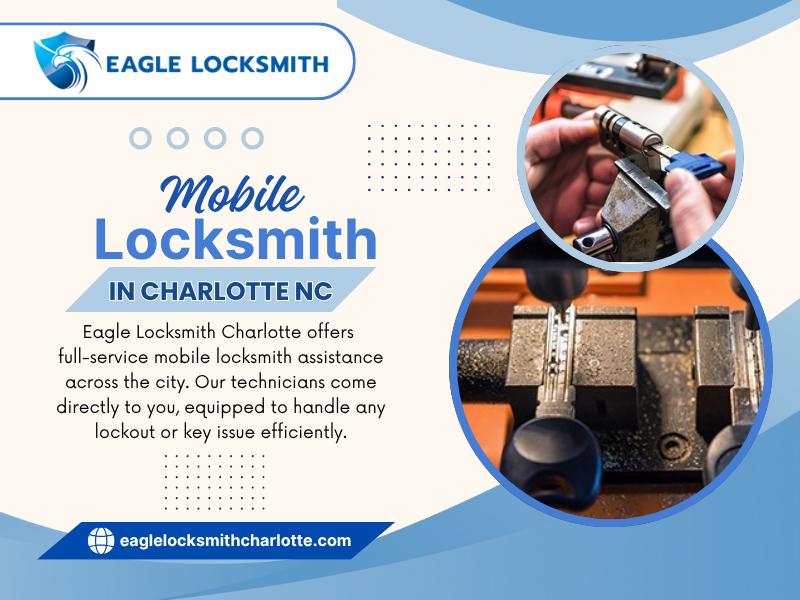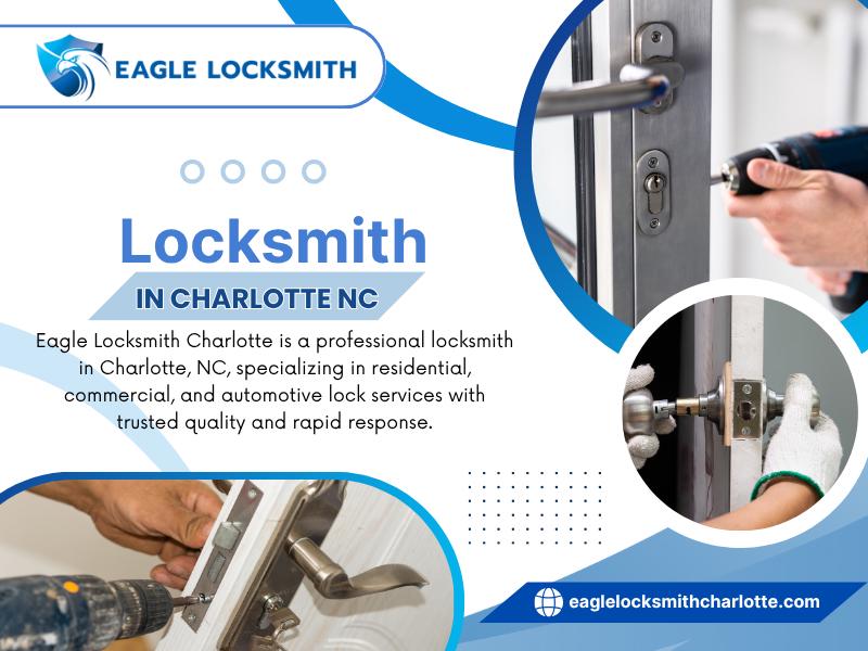 Eagle Locksmith is your trusted local locksmith in Charlotte, NC, providing fast, professional, and affordable mobile locksmith services. We specialize in car key replacement, lockouts, rekeying, key duplication, and smart lock installation for homes, businesses, and vehicles. Our licensed technicians offer 24/7 emergency service, quick response times, and honest pricing. Count on Eagle Locksmith Charlotte for dependable security solutions when you need them most.
