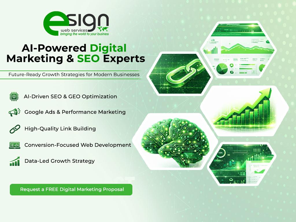 eSign Web Services is a globally trusted AI-powered digital marketing and SEO agency delivering performance-driven solutions for businesses seeking measurable growth. Built on structured strategy, technical excellence, and data-led execution, we help brands strengthen their online presence across both traditional search engines and AI-powered discovery platforms.