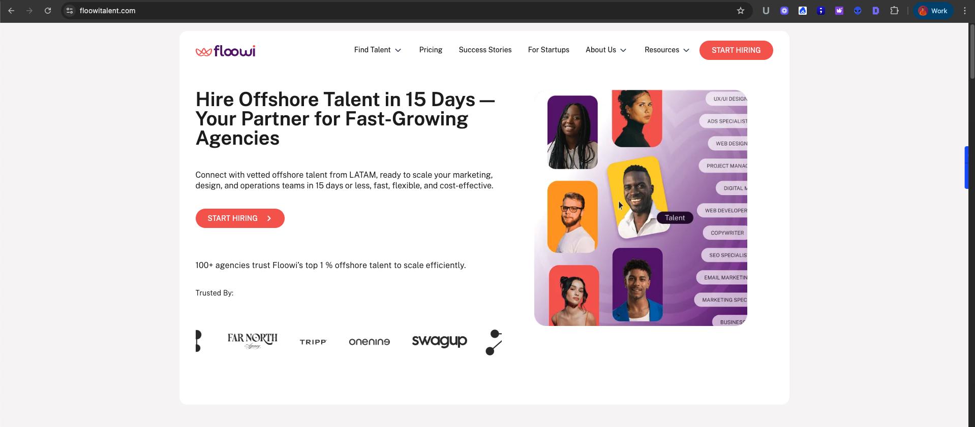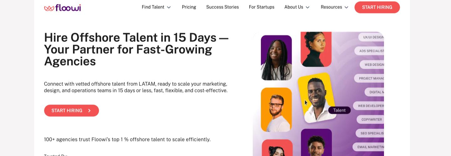 Floowi is your dedicated partner for building and scaling agency teams using exceptional Latin American offshore talent. Within just 15 days, we connect you with bilingual experts in marketing, design, operations, and more — all carefully screened for cultural compatibility, time zone fit, and workflow efficiency. We manage the entire process: from recruitment and contracts to payroll, onboarding, and continuous support, ensuring smooth integration. With Floowi, agencies achieve outstanding quality, adaptable engagement models, and up to 45% cost savings compared to local hiring. Over 100 agencies trust us to scale with zero friction.