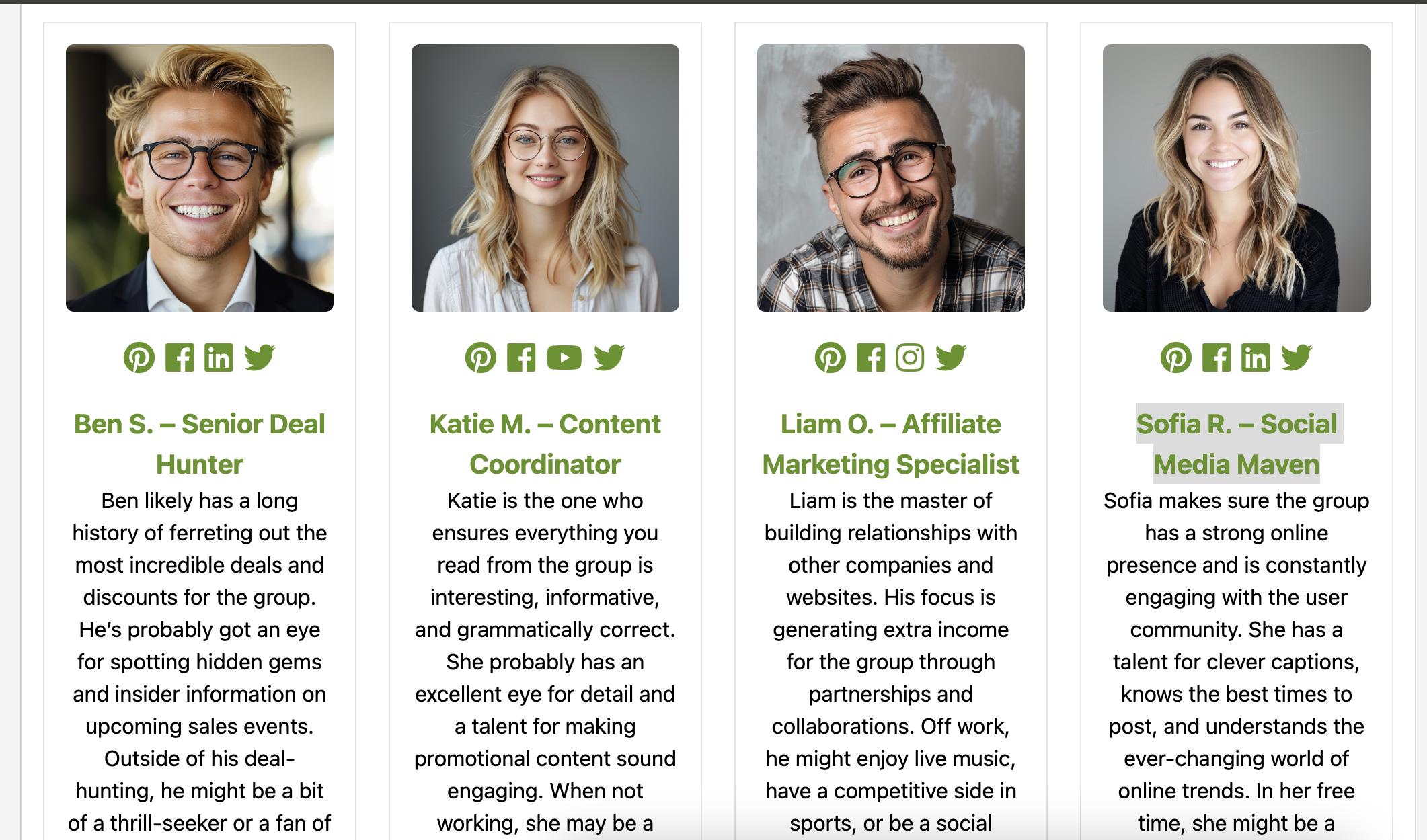 - Sofia R: Social Media Maven