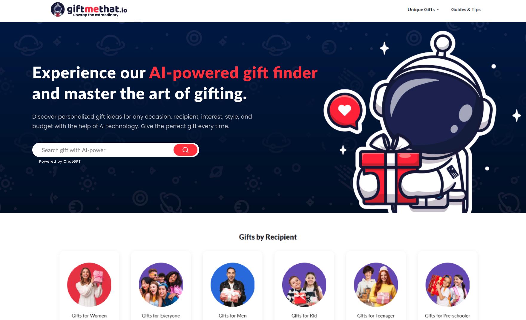 Find the perfect gift with GiftMeThat's AI-powered search and expertly curated handpicked gifts. Our 300B+ possible filter combinations make personalized, thoughtful, and effortless gifting a reality.