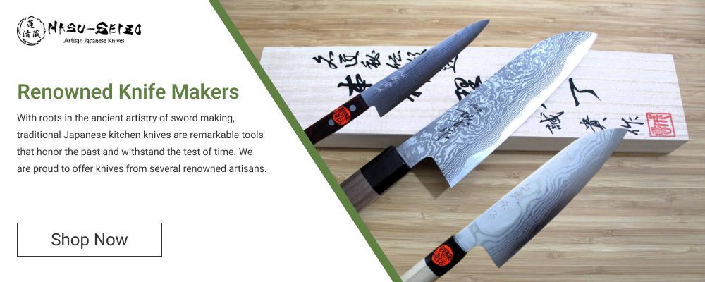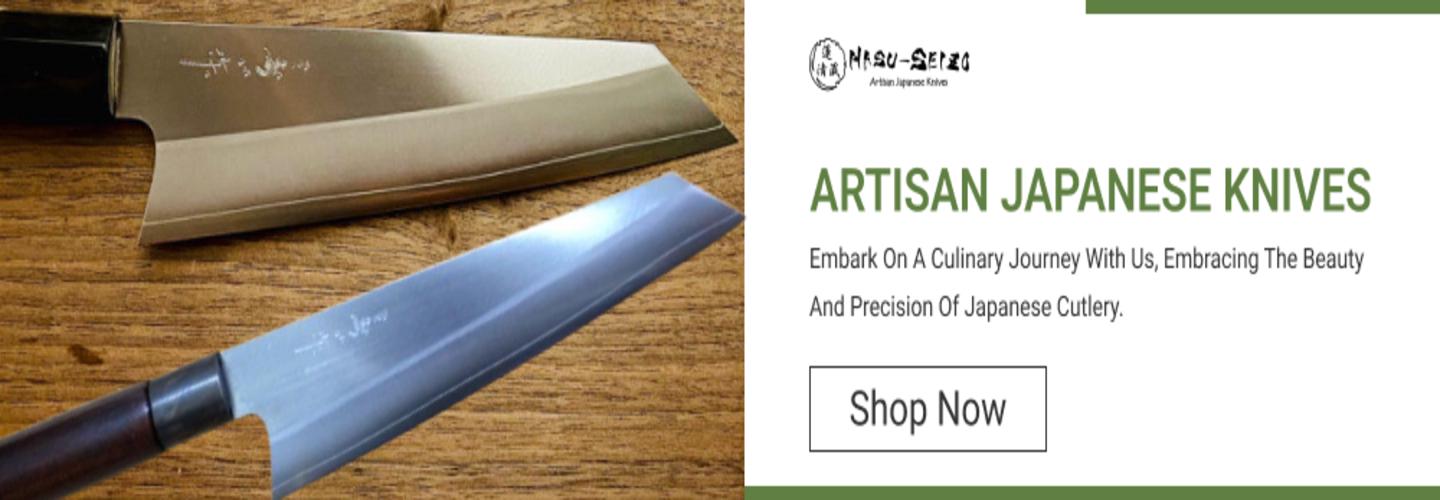 Hasu-Seizo offers premium handmade Japanese knives in the United States. Our selections include versatile chef knives such as the Gyuto or Santoku, specialized Nakiri knives for precise vegetable slicing, and high-carbon stainless steel knives crafted for durability and sharpness. As a Japanese knife importer and artisanal knife retailer, we bring the artistry and craftsmanship of Japanese cutlery to both professional chefs and home cooks alike. If you're seeking a custom knife for your culinary needs, our online knife store offers a wide range of handcrafted knives. Enhance your kitchen with tools that merge tradition and innovation.