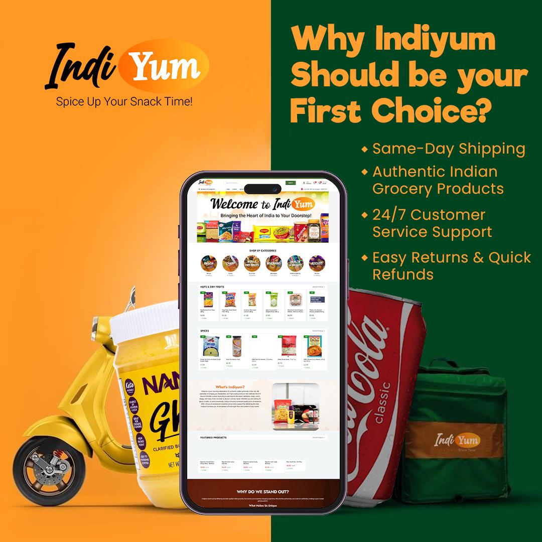 Indiyum Store is your trusted destination for authentic Indian groceries in the USA. From spices and snacks to oils, beverages, and Herbalife products, we bring the true taste of India right to your door. Enjoy fast, reliable service and free shipping on orders over $99. Order before 2pm EST, and we’ll ship your items the same day. Experience the rich flavors of India with Indiyum Store today.