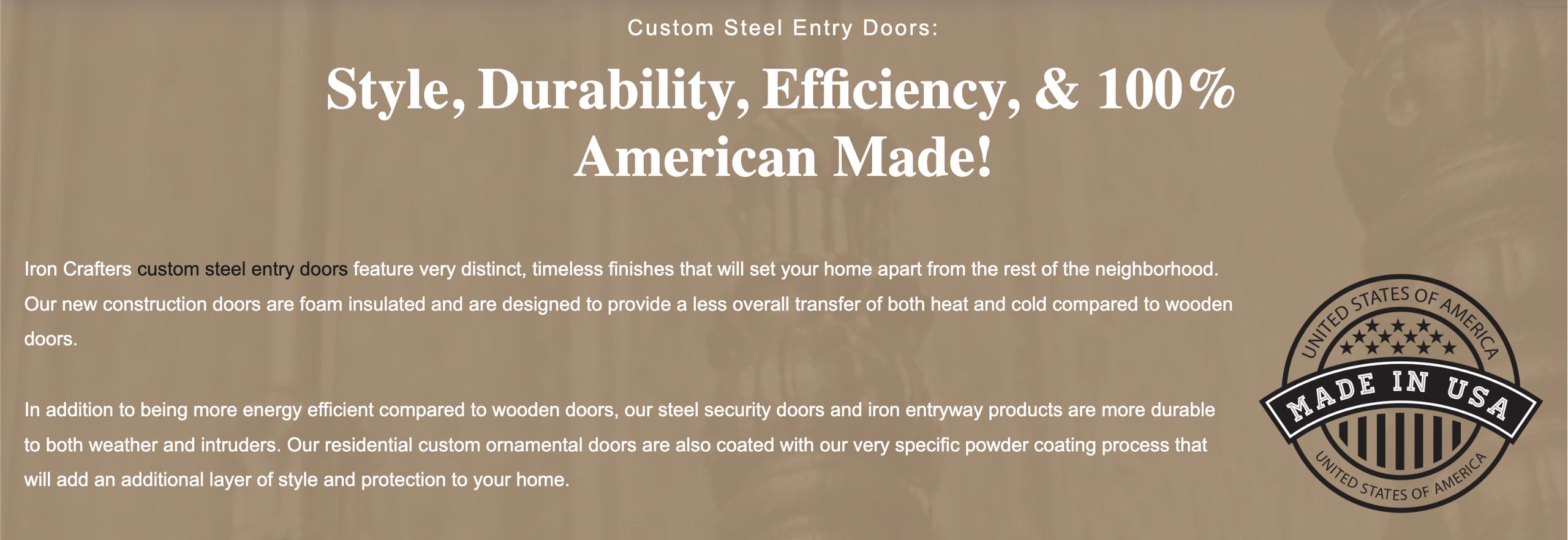 Iron Crafters is a leading door manufacturer and home improvement contractor serving the continental US. We specialize in custom iron entry doors, ornamental iron entry doors, custom steel security doors, iron pivot doors, exterior and interior railings, and custom powder coated steel screen rooms made in the USA. Each product is crafted in-house to your specifications using proprietary technology to give you the beauty of wood or any color of the rainbow with the security, strength and durability of iron and steel and an ultra low maintenance finish to enhance and update your home inside and out. With over 39 years of experience, every product is engineered in-house for ultimate security, ultra low maintenance and a perfect fit. Discover quality custom solutions with Iron Crafters Security Products today.