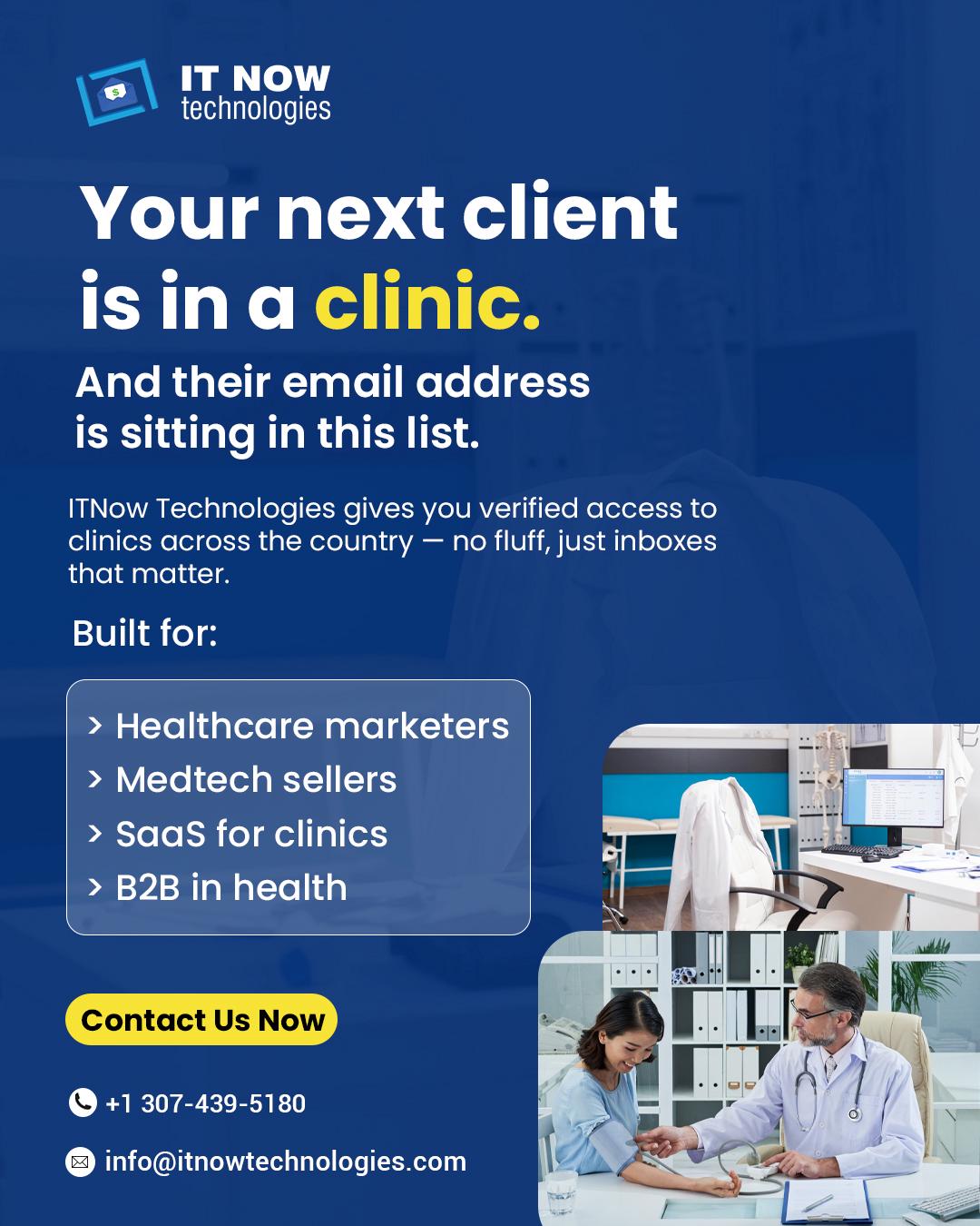 IT Now Technologies is your one solution to all marketing problems. Over here, we have curated the best email database for marketing your brand. We thrive in email marketing, lead generation, appointment setting, social media management, and more. With the best-reviewed data, we provide solutions that foster trust with our clients. We’ll help you build your mailing list or email list using targeted geographic and firmographic search selects such as ZIP Code, state, industry titles, seniority levels, and executive titles.