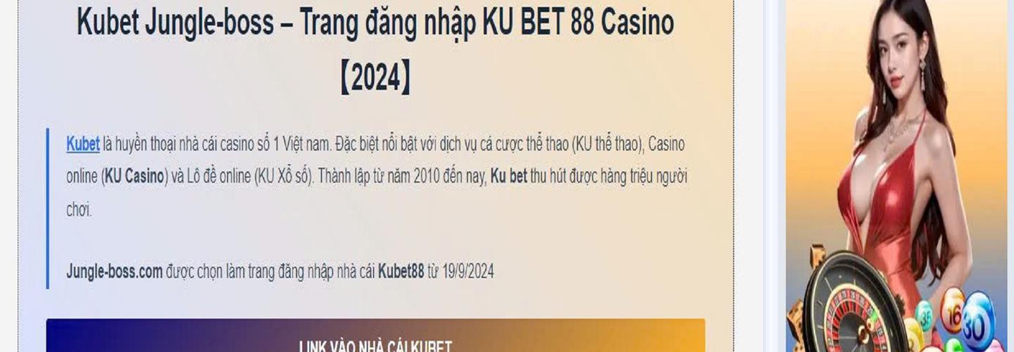Kubet Jungle-boss là trang đăng nhập chính thức độc quyền của huyền thoại nhà cái Kubet casino số 1 Việt Nam kể từ ngày 19/9/2024. Truy cập để nhận ngay phần thưởng trị giá 188k.