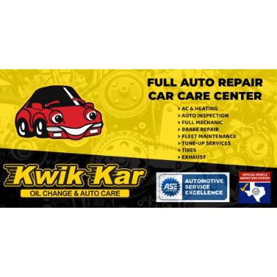 Kwik Kar Oil Change and Auto Care has been serving the Dallas and Richardson areas since 1995. We are a full-service automotive repair shop that offers oil changes, tire rotations, brake repairs, and more. Kwik Kar provides full service solutions for vehicle needs. At Kwik Kar, Oil Change and Auto Care, we are 100% customer focused. Our proprietary 5-star customer service combined with our expert team of automotive technicians delivers an amazing experience you will never forget.
