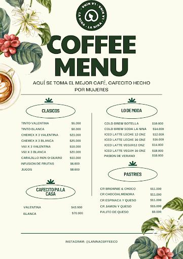 La Nina Cafe’ offers a variety of traditional coffee drinks, specialty liquor drinks, and flavored coffee. We are located in beautiful El Poblado, Medellin. Our menu is reasonably pricing and service with a smile!