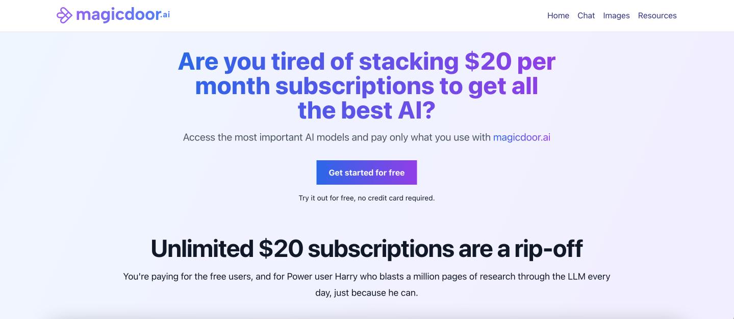 Magicdoor.ai is a user-focused platform delivering instant access to powerful AI models. Its pay-per-use plan and intuitive design make it a top choice for developers and businesses.