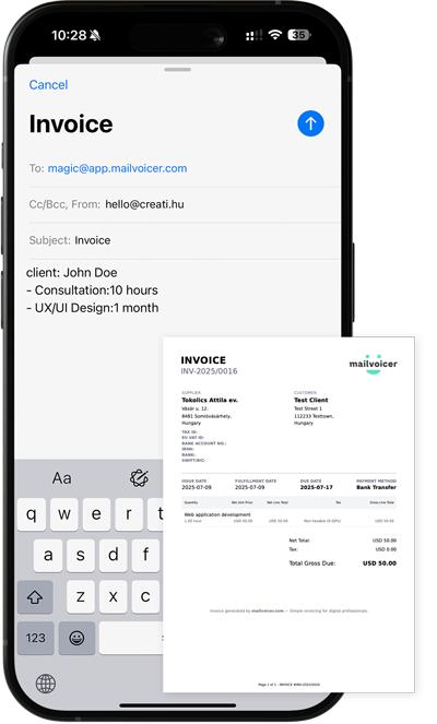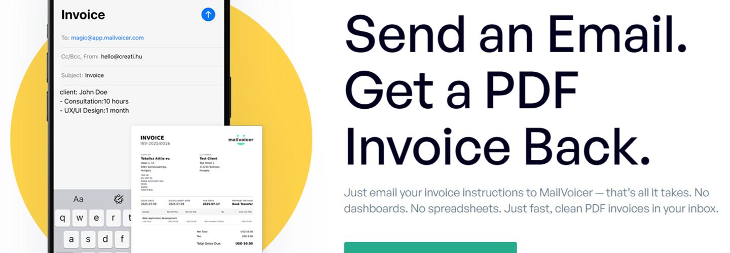 MailVoicer is a minimalist invoicing tool for freelancers and digital professionals who hate dealing with complicated invoicing apps. After a quick onboarding, you can generate ready-to-send PDF invoices just by sending an email to the app.