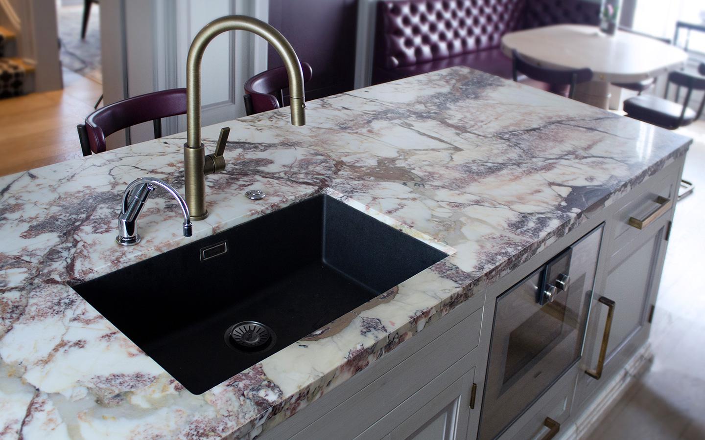 We produce marble kitchen worktops and bathroom vanities at Marble & Granite. Marble is a natural stone that is more porous than granite or quartzite, but pastry chefs delight in it because it keeps cool and is ideal for rolling out pastry. As a natural stone it comes in an almost limitless choice of different veining and colours: if you choose marble worktops you can be sure that they are unique and will make a great talking point for friends.