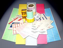 Pinfeed cards and labels. Thermal ribbons. Customize labels made to fit your needs. Send the information by e-mail.