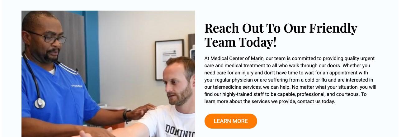 As the premier urgent treatment in the SF Bay Area, Medical Center of Marin is dedicated to offering quality urgent care and medical treatment to all who walk through our doors. Whether you require a covid test, care for an injury and don't have time to await a consultation with your normal medical professional or are experiencing a cold or flu and have an interest in our telemedicine services, we can assist. Whatever your scenario, you will certainly locate our highly-trained staff to be qualified, professional, and courteous. To get more information about the services we supply, contact us today.