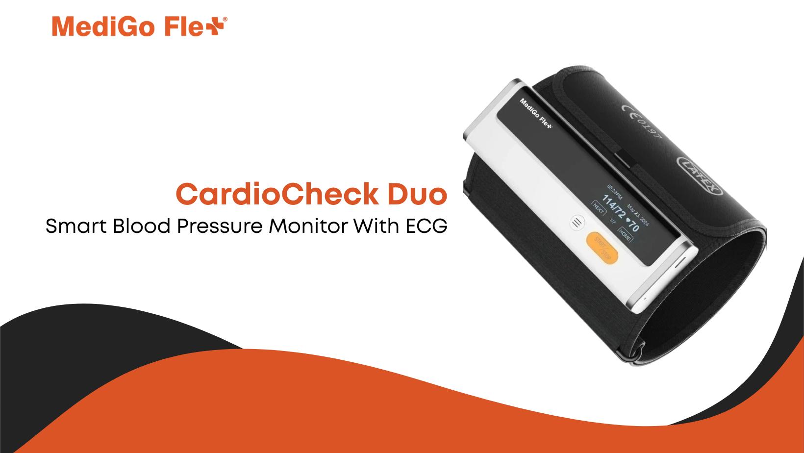 MediGo Flex offers you the CardioCheck Duo, a smart device that checks your blood pressure and ECG right from the comfort of your home. Our device is designed with ease of use, delivers accurate and medical-grade results quickly, helping you stay informed about your heart health every day. With the MediGo Flex app, you can store, track, and analyze your readings over time.