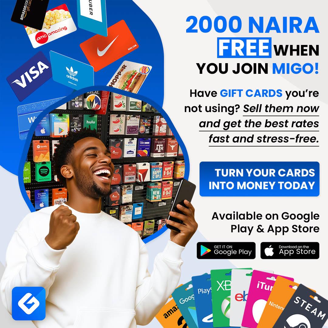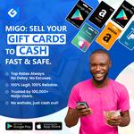 Trade gift cards for instant cash in Nigeria and Ghana with Migo. Enjoy high rates, fast payouts, and secure transactions for Apple,Amazon, iTunes, Steam,Google Play,Razer Gold,Ebay,XBox,Nordstrom,Walmart,Vanilla,Nike,Target,Macy,GameStop,FootLocker,lululemon,COACH,Sephora,PlayStation,Roblox,Greendot, and more..