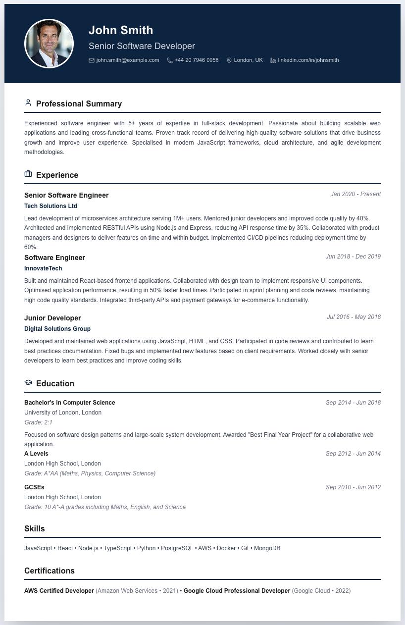 Modern CV is a smart, simple CV builder that makes creating and updating your CV fast and effortless. Pick from clean, professionally structured templates, customize your layout, and export with polished formatting. Designed for students and professionals who want a modern, flexible tool to present their experience clearly.