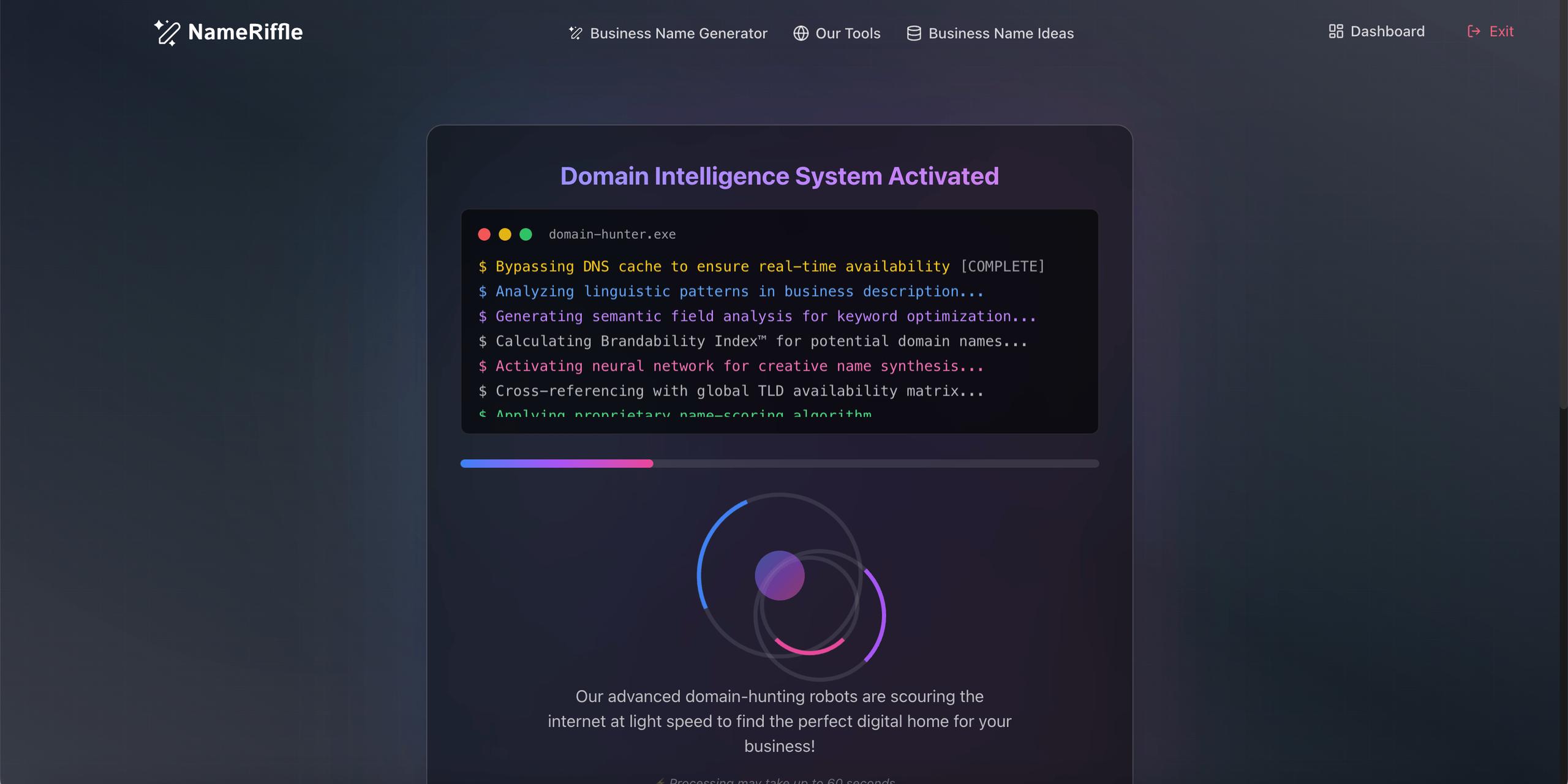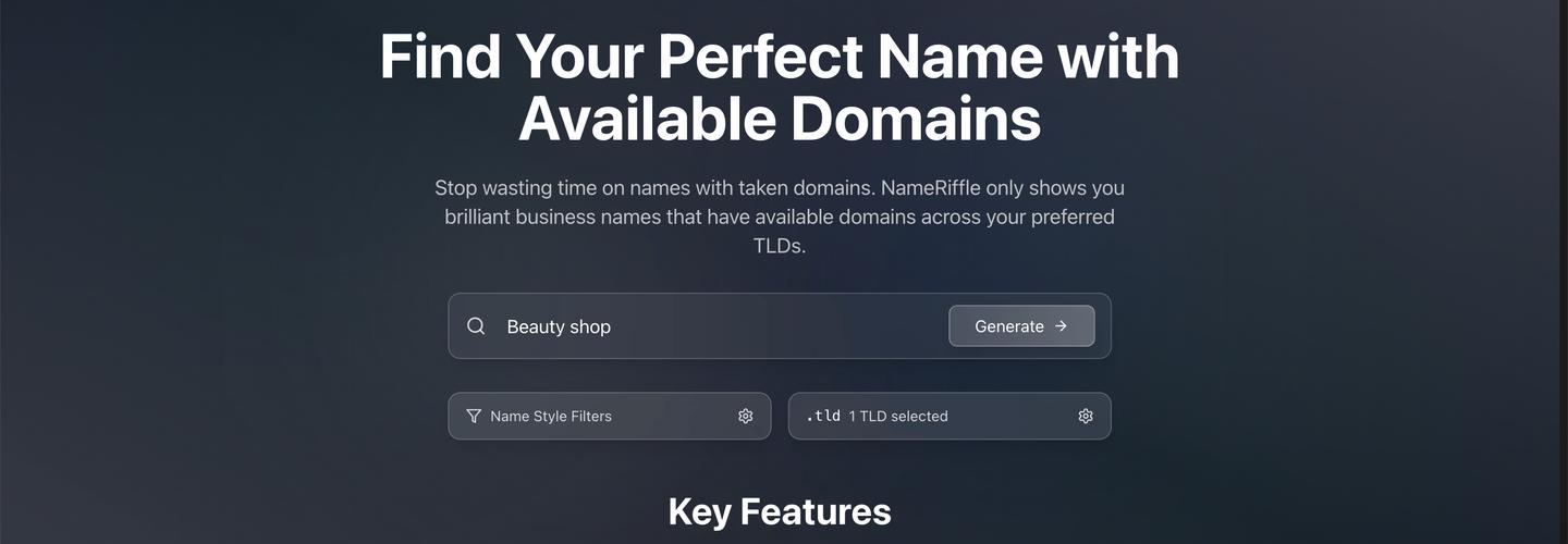 NameRiffle have built the first business name generator that combines an AI-driven name engine with domain checkup. We only generate names that are available to purchase. Finding a business name with a .com has never been easier!