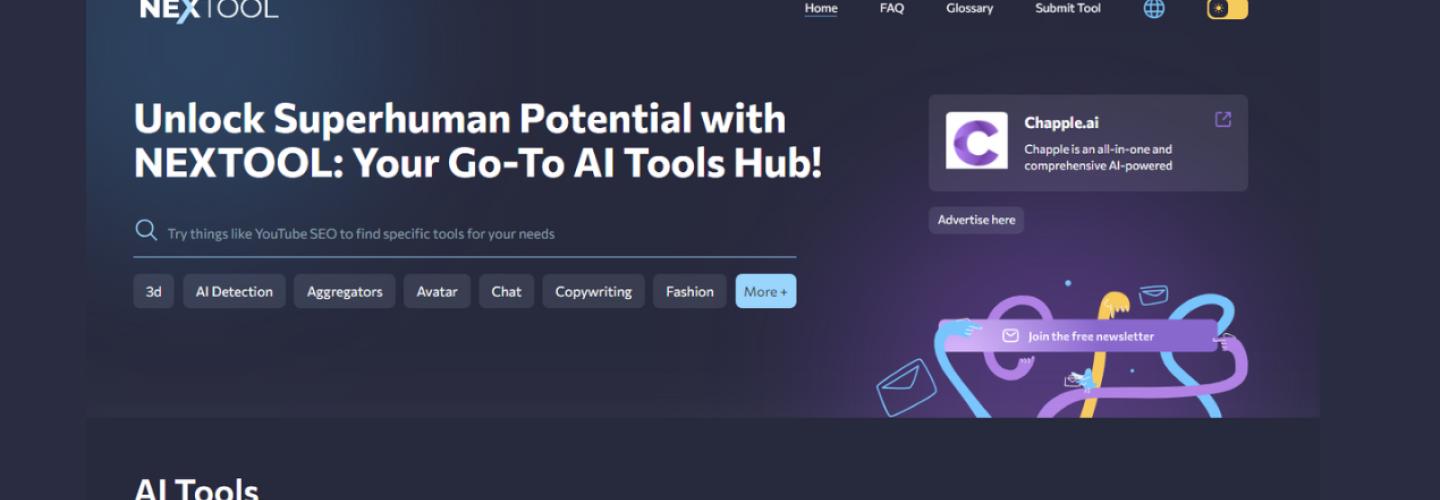 Join the fastest-growing AI tool discovery platform where innovative AI solutions meet engaged users. Whether you're launching an AI tool or searching for artificial intelligence solutions, Nextool.ai is your trusted AI discovery marketplace.