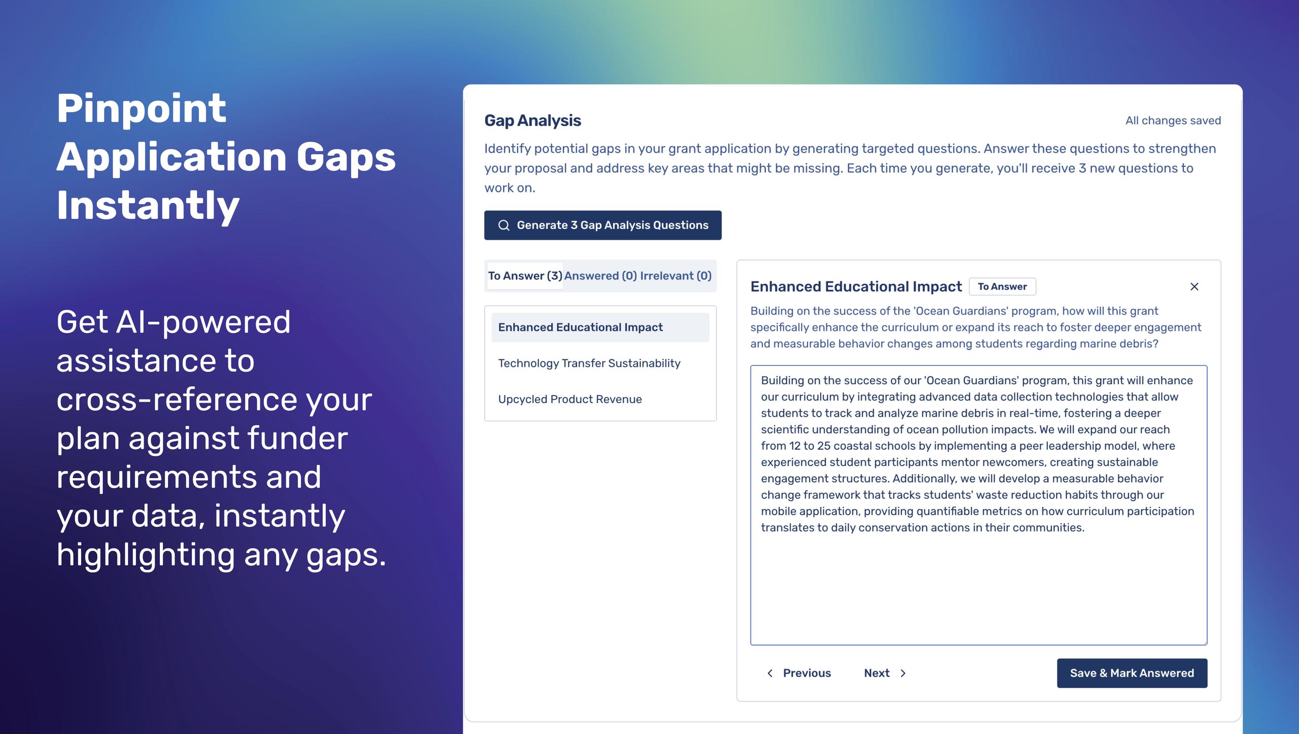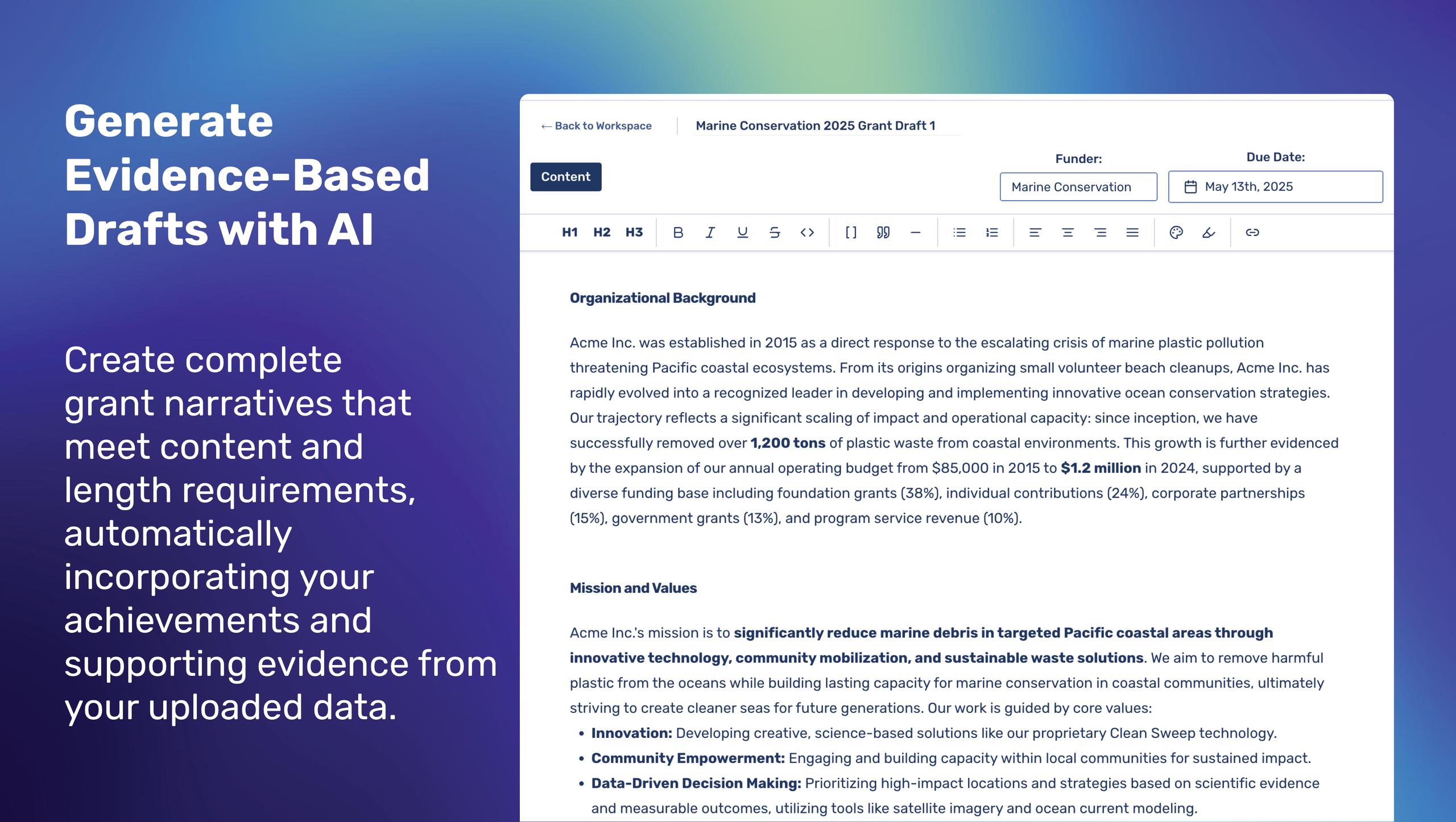 Northstar Toolkit provides AI-powered tools designed for nonprofits and mission-driven organizations to streamline grant writing, improve planning, and enhance research. Key features include evidence-based grant writing, organizational knowledge management, funder research, and structured grant creation with AI. Our goal is to help organizations save significant time and resources while creating more compelling, data-driven grant applications.