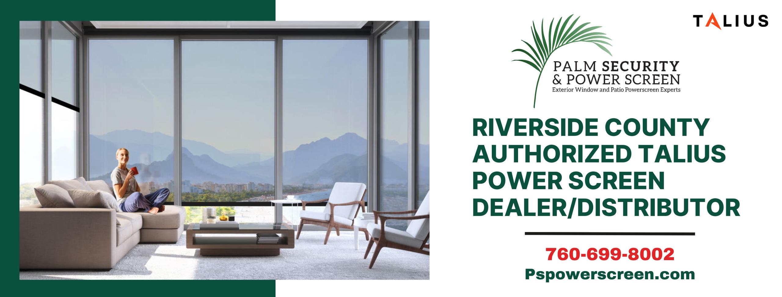 PSPS is your Riverside County Authorized Talius power screen Dealer/Distributor with a focus on the greater Coachella Valey. We offer a full line of Exterior Power Wind & Shade Screens and Security Shutters for your Home and Business in the Coachella Valley.