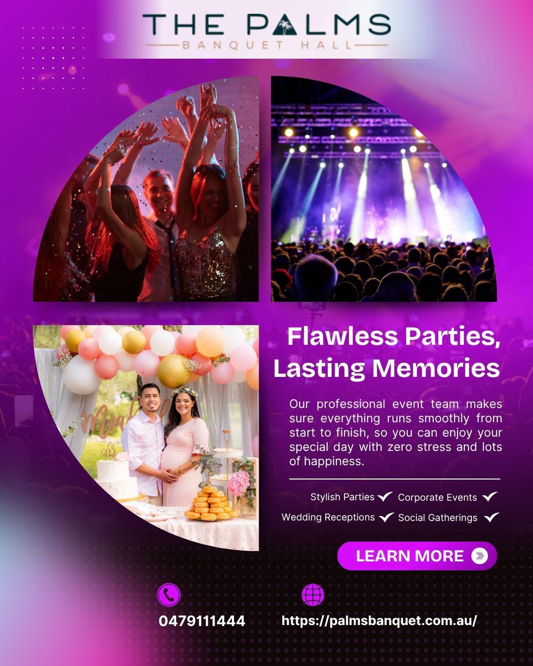 Palms Banquet is the perfect choice for an outstanding reception venue. The place where we host our events is designed to provide a beautiful setting for your special occasions, with lovely decorations and excellent facilities. Palms Banquet offers outstanding service and a stunning atmosphere, making it the ideal option for your reception venue. Get in touch with us today to begin organizing your dream event. For more details, contact us at: 0479111444 or visit our website: https://palmsbanquet.com.au/