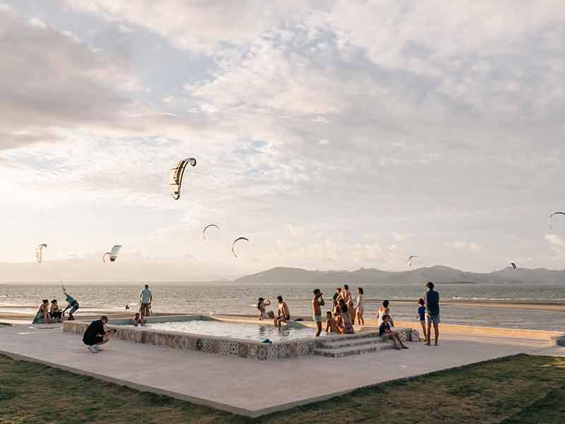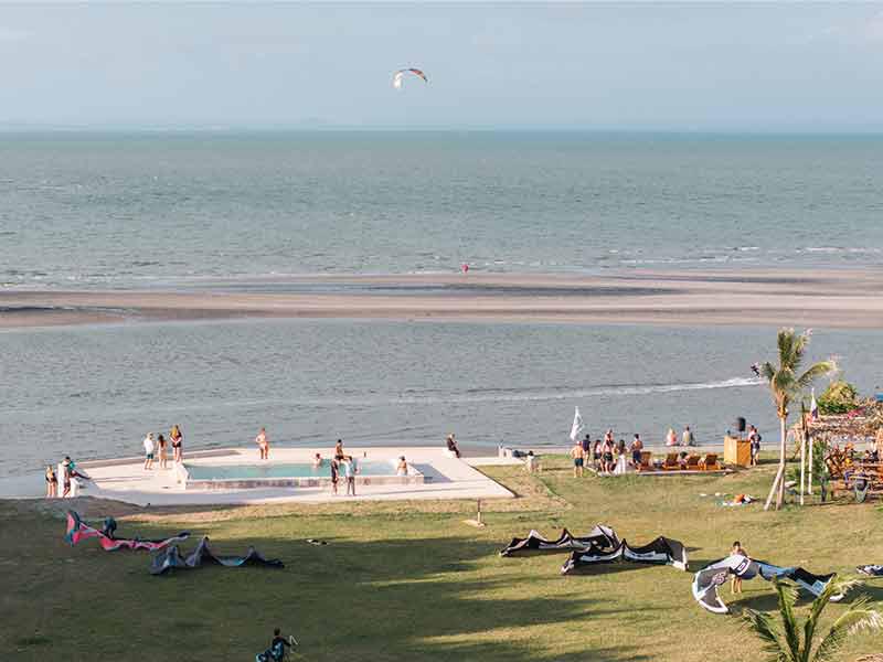 We are more than just a kite school; we are a complete kitesurfing resort. Our facilities include a wide range of amenities designed to make your kite holiday unforgettable. We offer various accommodation options, from independent studios and cozy glamping tents to comfortable rooms, all just steps from the water. Our on-site restaurant, Solé Beach Club, serves delicious international and local cuisine, providing the perfect place to refuel between sessions or relax while enjoying the ocean view.