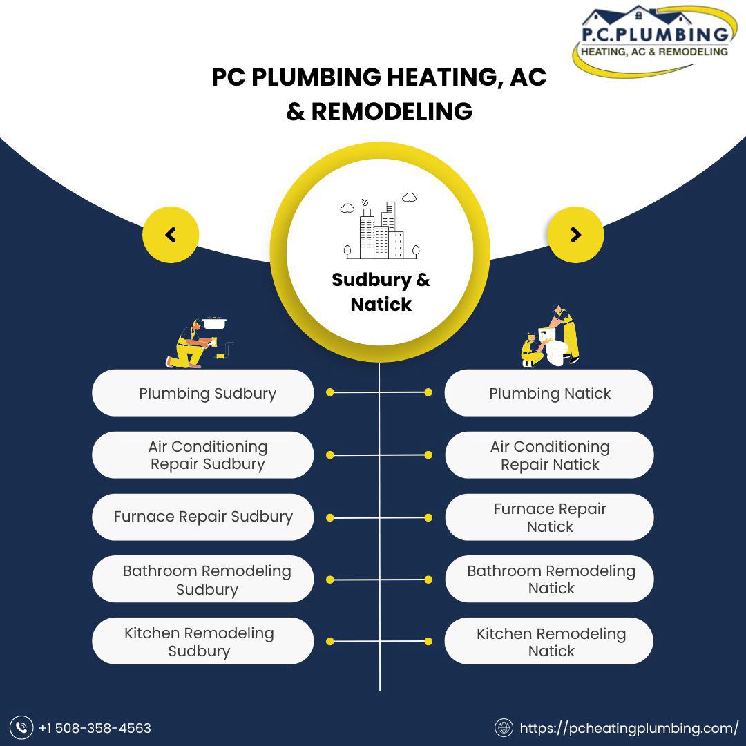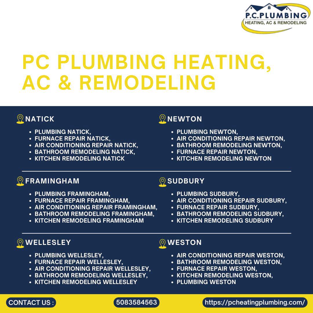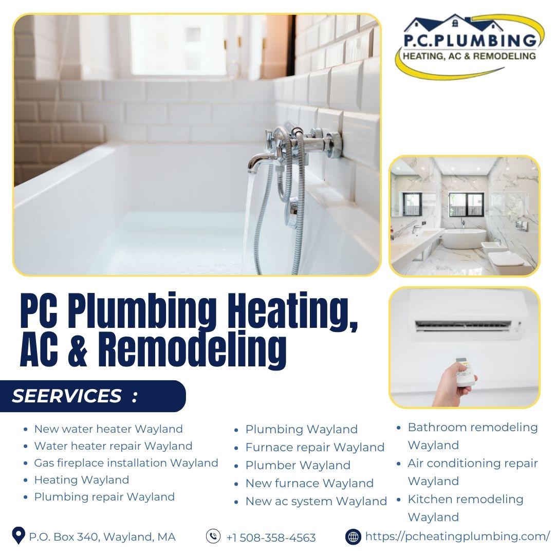 Expert Plumbing Services: PC Plumbing, Heating, AC & Remodeling is your trusted partner for all plumbing needs across Wayland, Sudbury, and Framingham. As your reliable Plumber Wayland, we handle every aspect of Plumbing Wayland, from routine Plumbing Repair Wayland to specialized installations. We're experts in New Water Heater Wayland and efficient Water Heater Repair Wayland, ensuring you always have hot water. Beyond Wayland, our skilled team provides comprehensive Plumbing Sudbury and Plumbing Framingham services, addressing everything from leaky faucets to complex pipe issues with precision and care.