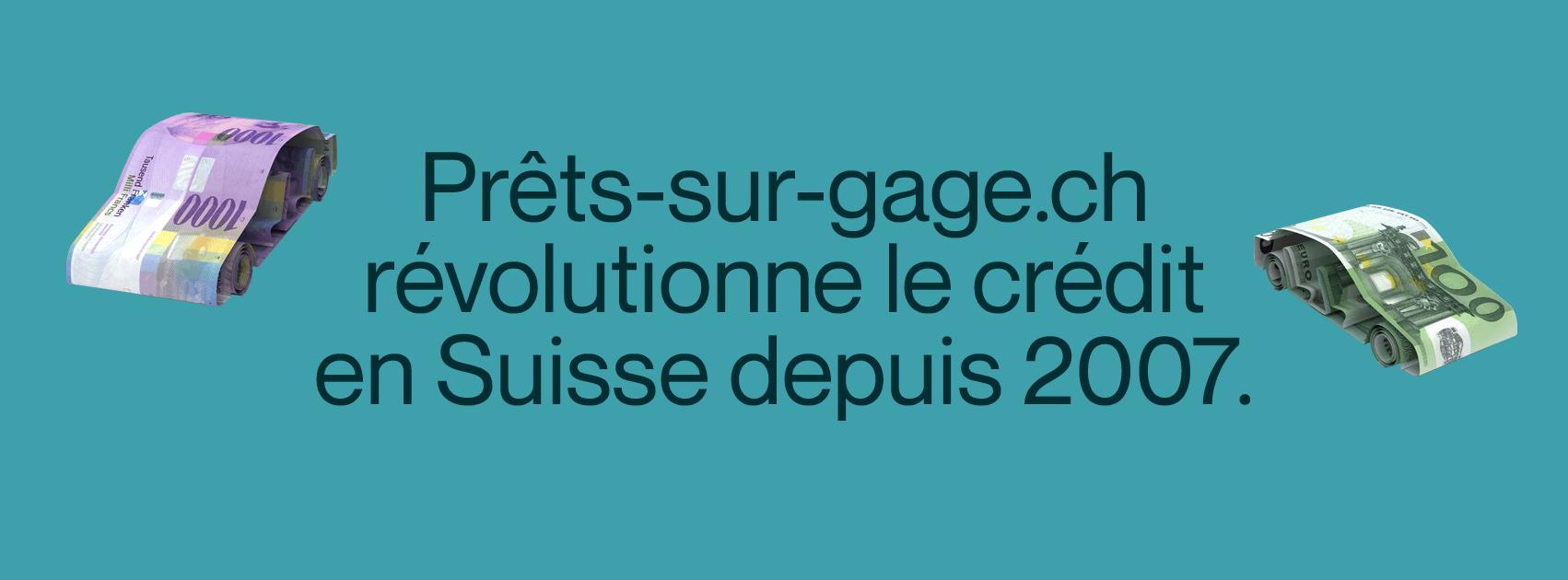 Depuis 2007, Prêts-sur-gage.ch révolutionne le crédit bancaire à Zürich, Lausanne, Neuchâtel, Genève et sur toute la Suisse. Avec Prêts-sur-gage.ch, vous obtenez jusqu'à 100 000 CHF en 24 heures contre le simple dépôt de votre voiture, camping-car, moto ou utilitaire. Simple, rapide et sans justificatifs.