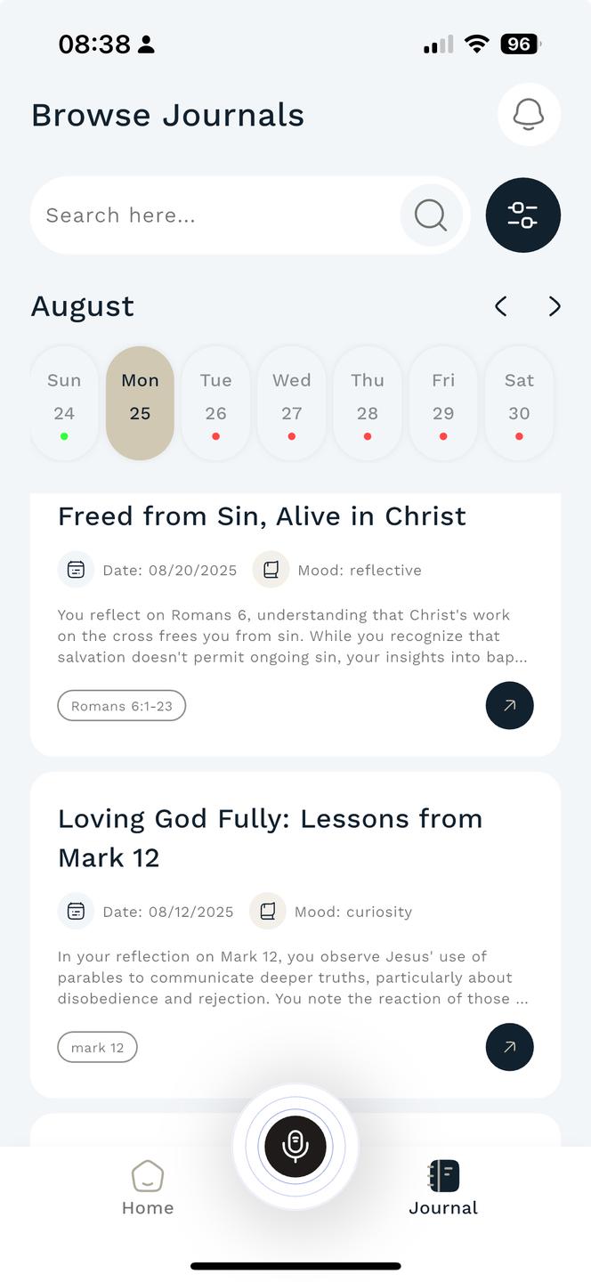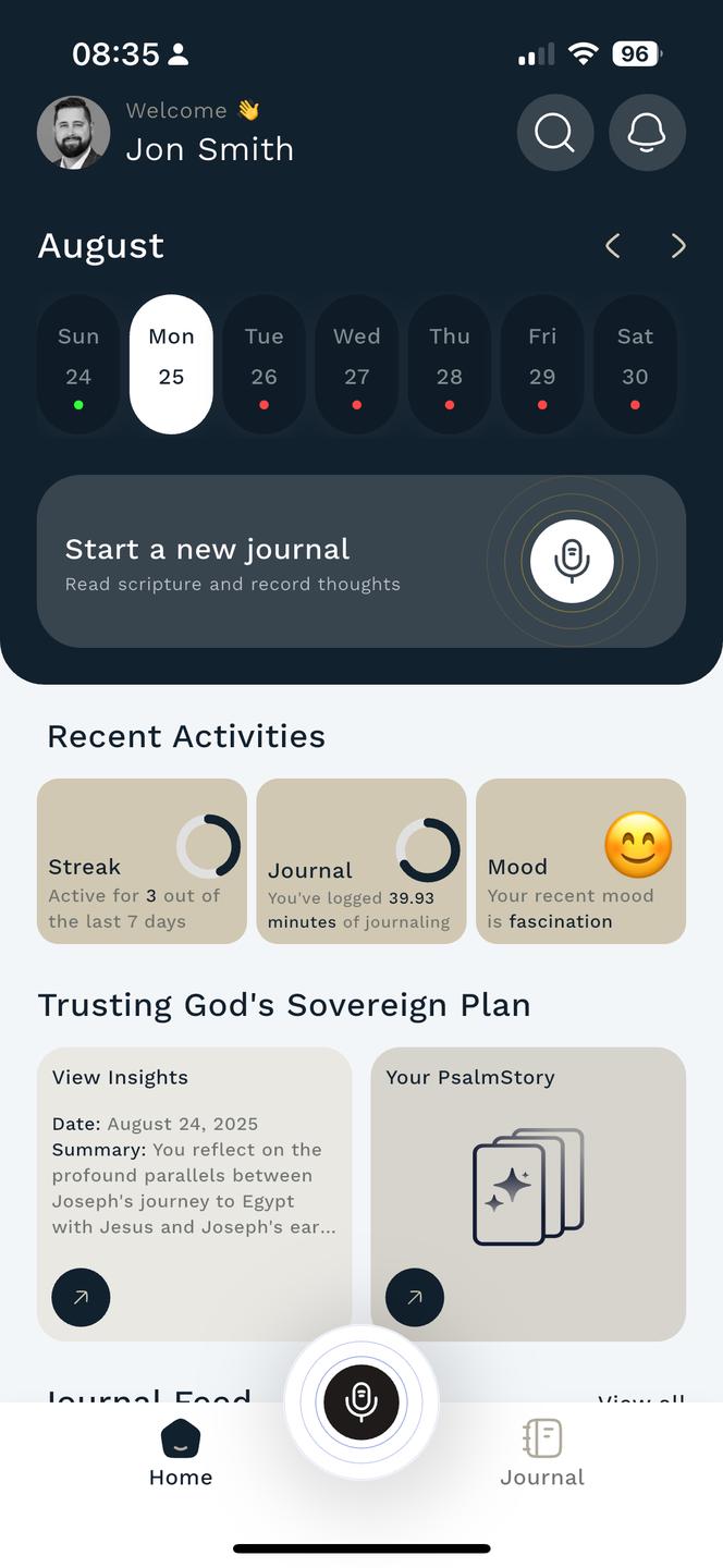 Your Voice. God’s Word. AI Reflection. Lifelong Growth. Don’t let your schedule weaken your faith. Psalmlog is the first AI-guided journal that helps you grow spiritually without the time demands of traditional journaling.