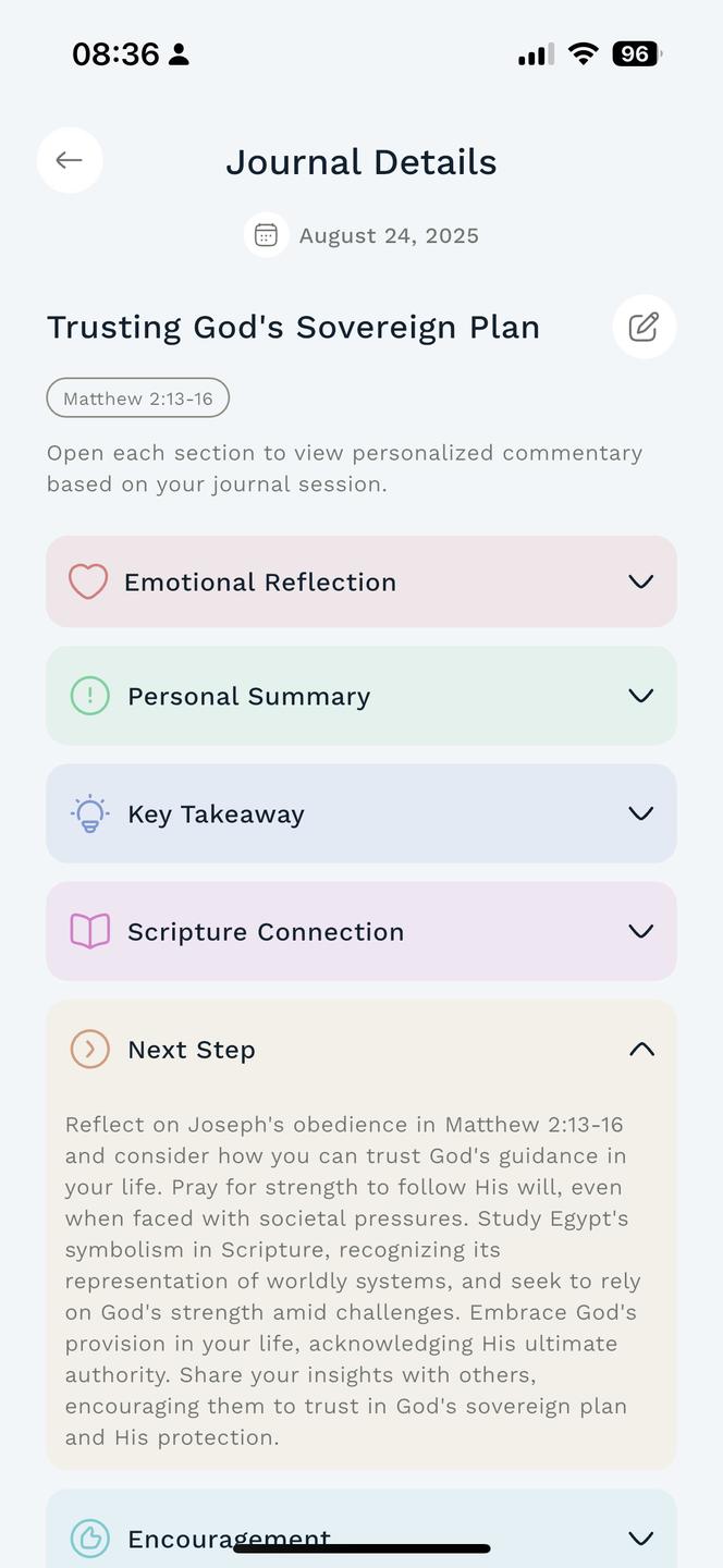 Real Results: Chart your journey, uncover hidden trends, and gain tailored biblical insights. A spiritual mentor available day and night.