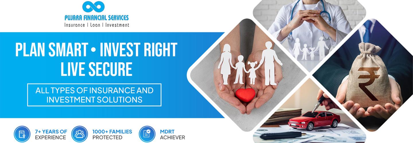 Established in 2018, Pujara Financial Services is your trusted partner for Insurance, Loan, and Investment solutions. We specialize in Life Insurance, Health Insurance, Vehicle Insurance, Mutual Fund Investments (SIP and Lump Sum), Vehicle Loans, Labour Insurance, Fire Insurance, and Financial Career Consultancy. Our mission is to provide expert financial guidance, affordable protection, and lifelong service to our clients, helping them secure their future and achieve financial freedom.