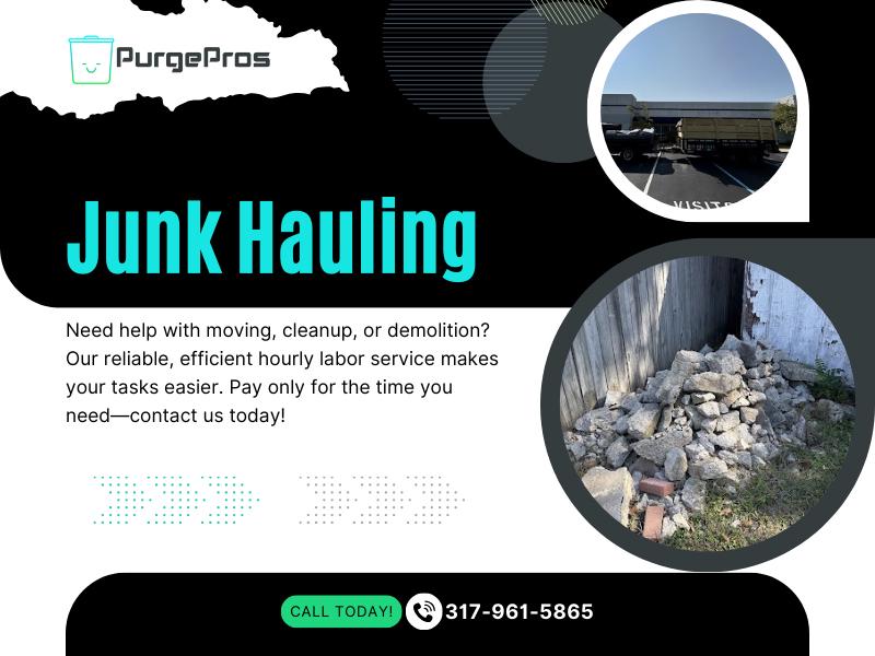 Junk removal, made easy, with the Purge Pros. In addition to our general removal services and hauling, we also offer Yard Waste Removal, Leaf Removal, Fallen Tree Removal, Gutter Cleaning, Light Demolition, Office Decommissioning, Hourly Labor, and more. Purge Pros Junk Removal is your reliable and local solution for all your junk removal needs in Indianapolis, IN, and the surrounding areas. We are a locally owned and operated business, dedicated to offering our community a professional, friendly, and efficient service. We offer Junk Removal, Hauling, Yard Waste / Debris Removal, Leaf Removal, Fallen Tree Removal, Light Demolition, Office Decommissioning, Hourly Labor, and more.