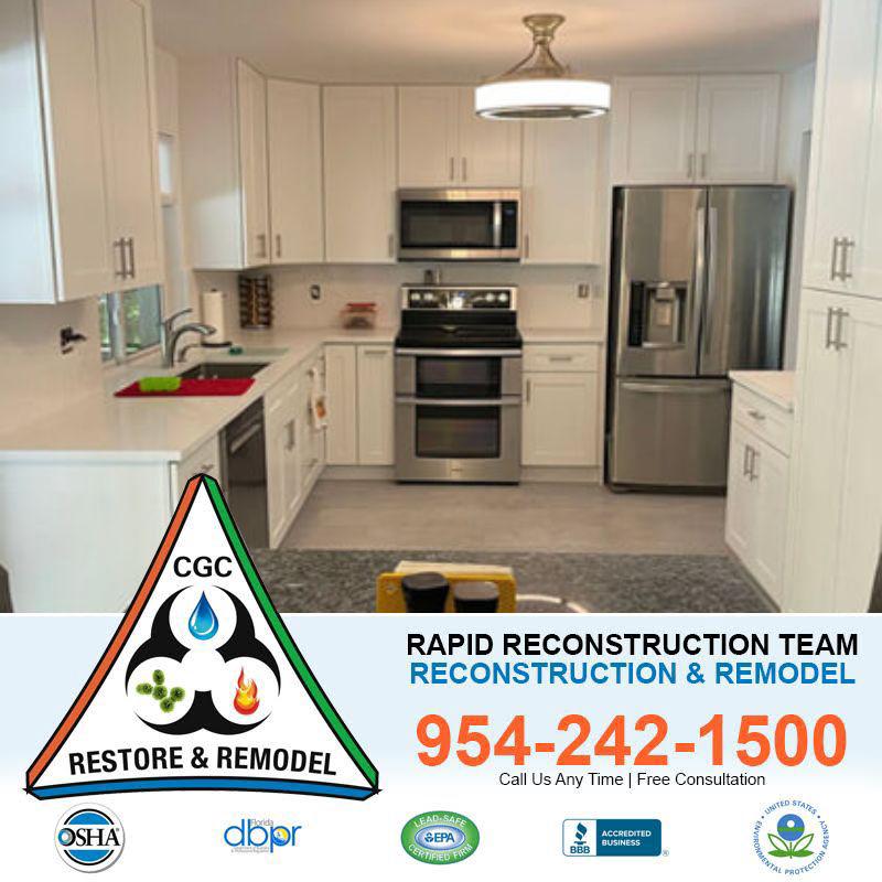 Rapid Reconstruction Team is a complete commercial and residential reconstruction services. Our rapid construction services includes design and planning, in-home measurements, project management, demolition and preparation, custom cabinets, cabinet installation, custom countertops, countertops installation, flooring installation (wood, laminate, tile), backsplashes, lighting configuration, painting, plumbing fixture installation and electrical reconfiguration.We also aim for rapid restore and readjustments to make your home livable again.