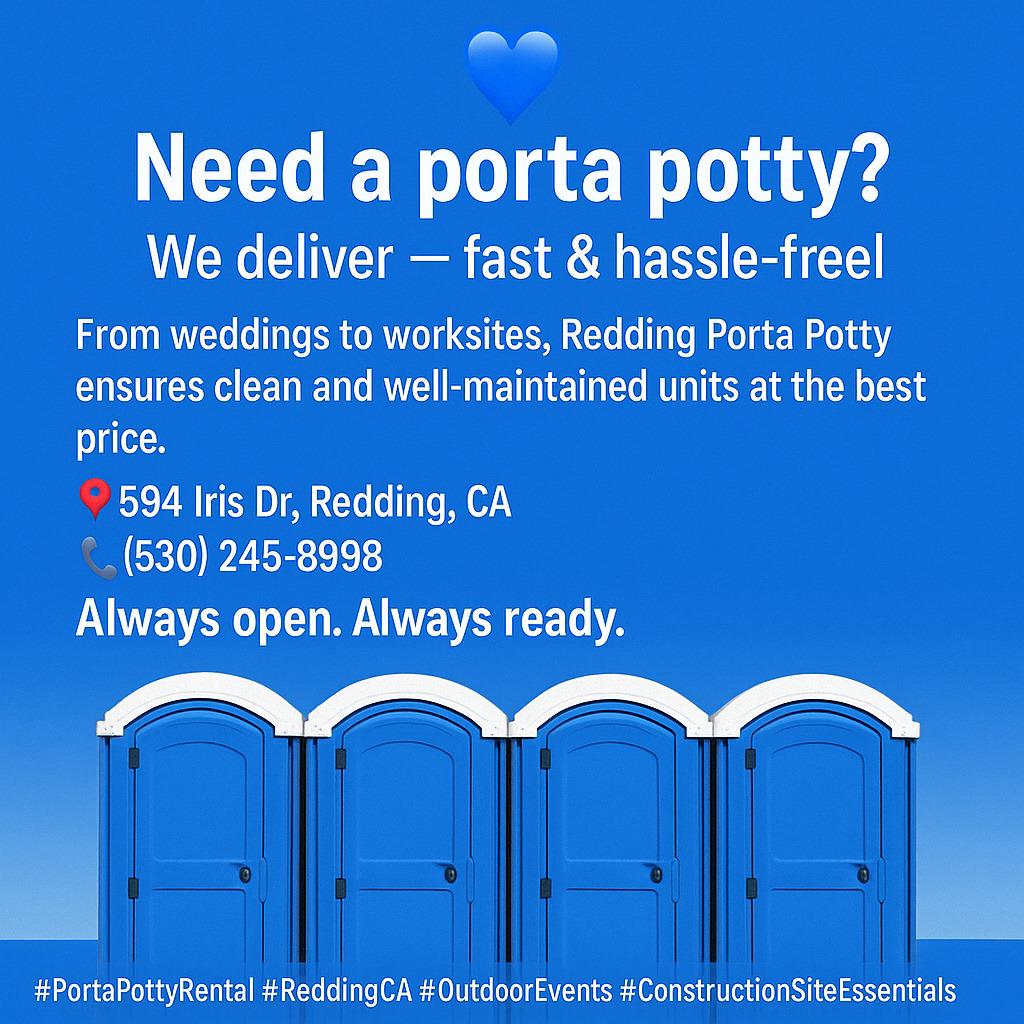 Get Started: Call (530) 245-8998, email reddingportapotty@gmail.com, or visit reddingportapotty.com for a free quote today!