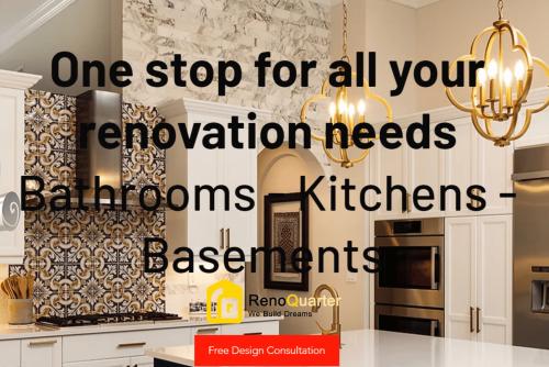 Reno Quarter is a leading contracting company based in Mississauga, specializing in turning your renovation dreams into reality. We offer a comprehensive range of services including design, supply, and installation for bathrooms, kitchens, and basements. Since our inception, we have been dedicated to providing exceptional project management and personalized service to meet all your renovation needs. Contact us today to learn more about our offerings and receive your free estimate.