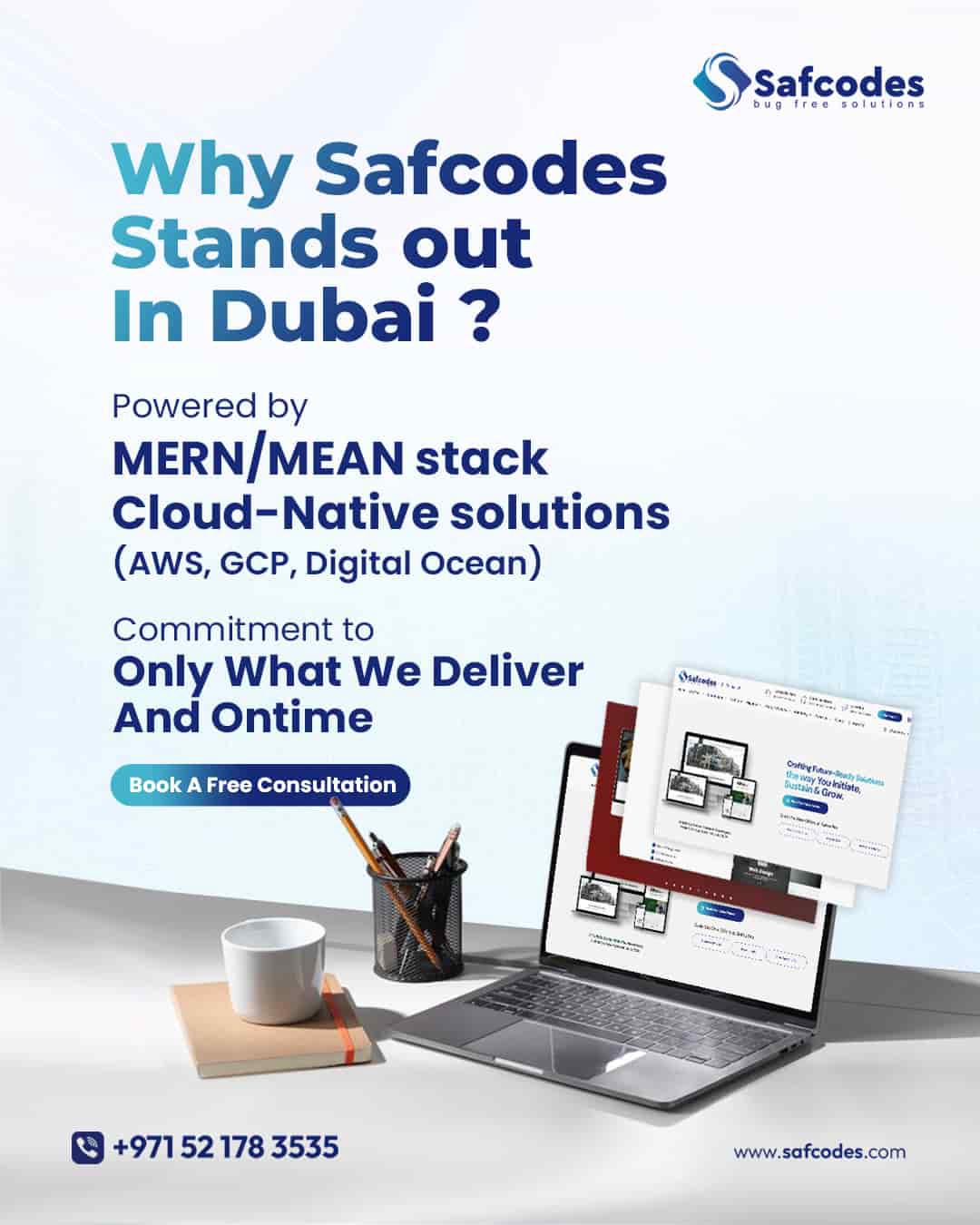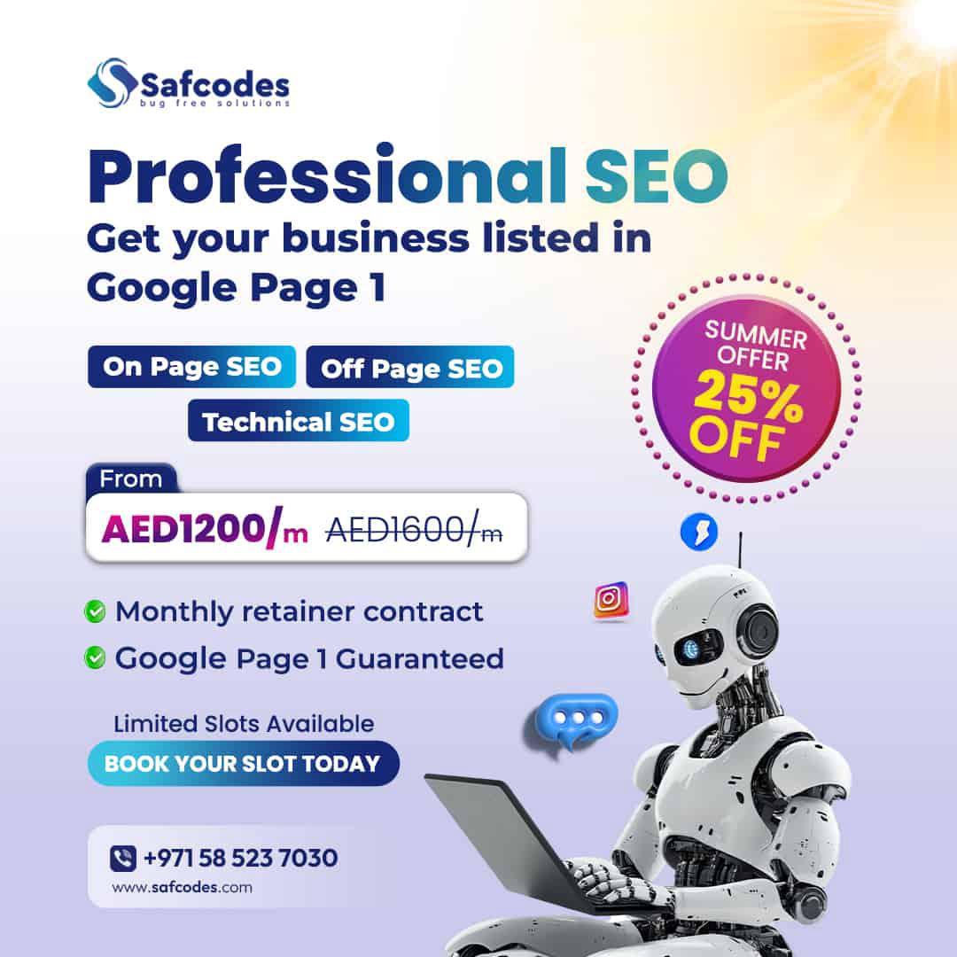 Safcodes is a leading Web development company in Dubai, delivering top-tier solutions for businesses. Specializing in a diverse range of services including E-commerce, Mobile App Development, Web Development, Enterprise Software Development, Blockchain Integration, and No-Code Applications. Their expertise extends to comprehensive Web Maintenance, along with an exceptional focus on UI/UX Design. With a strong emphasis on Growth Marketing, Safcodes offers comprehensive services in SEO & Google AdWords, and Social Media Optimization & Marketing, ensuring their clients achieve maximum digital visibility and sustainable growth in today's competitive market.
