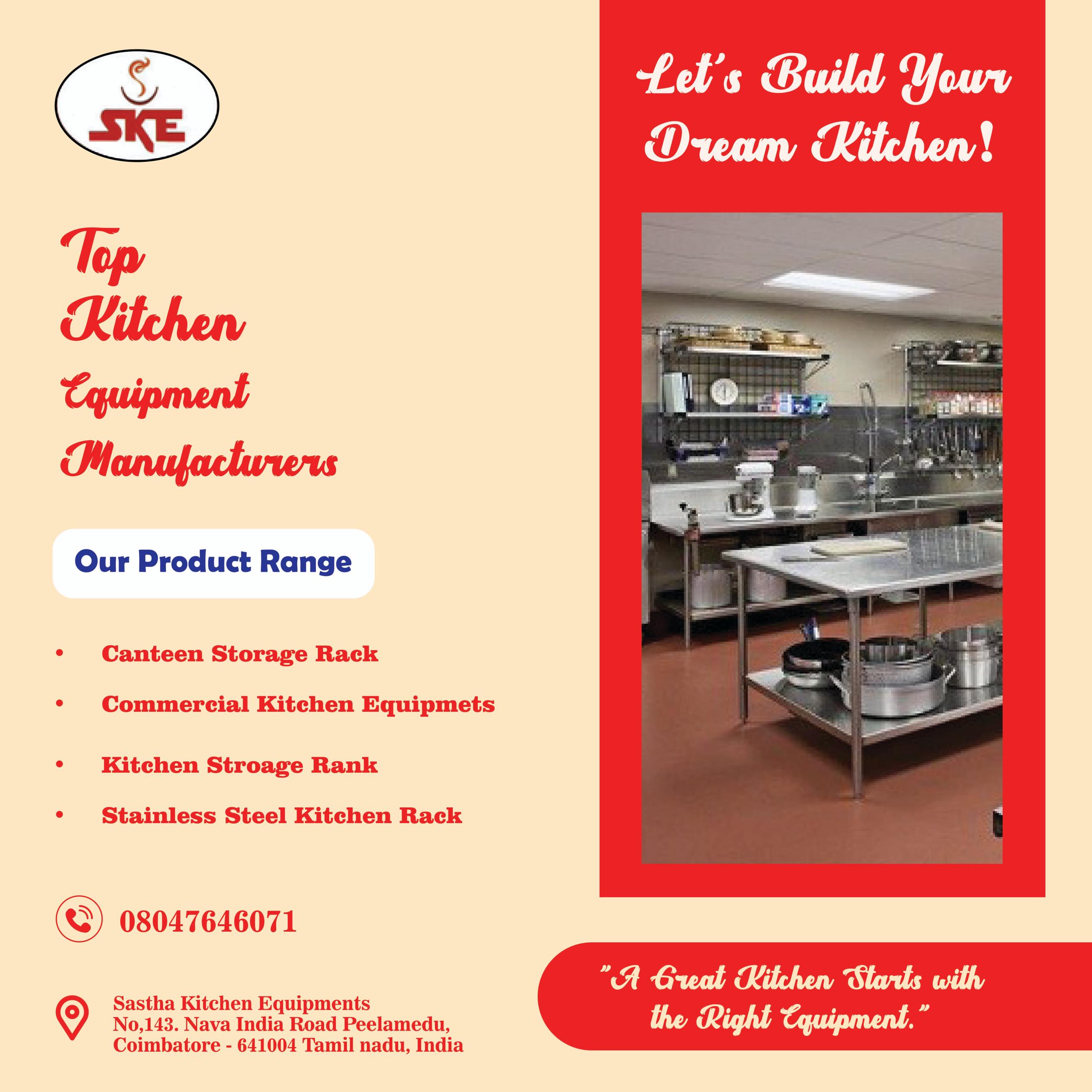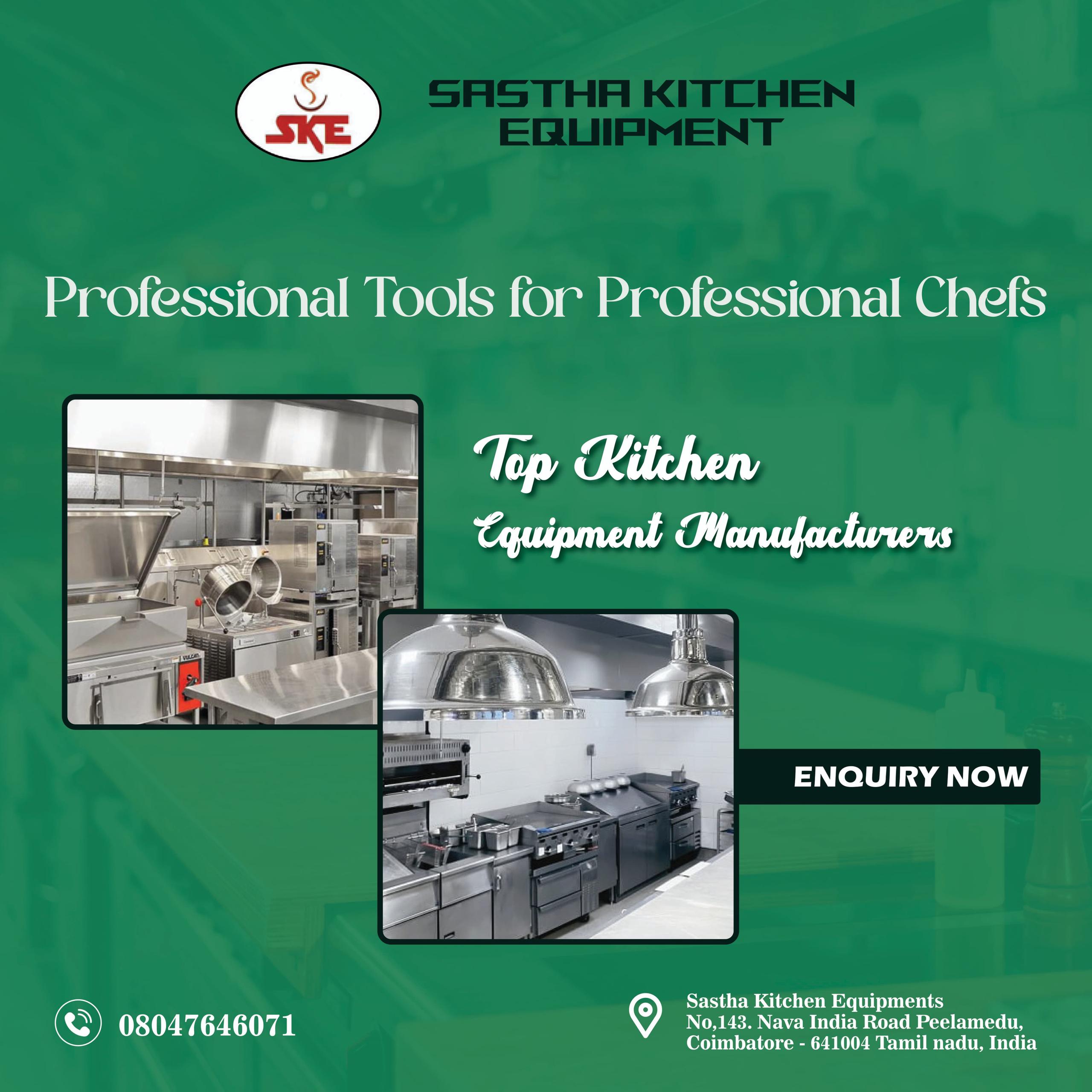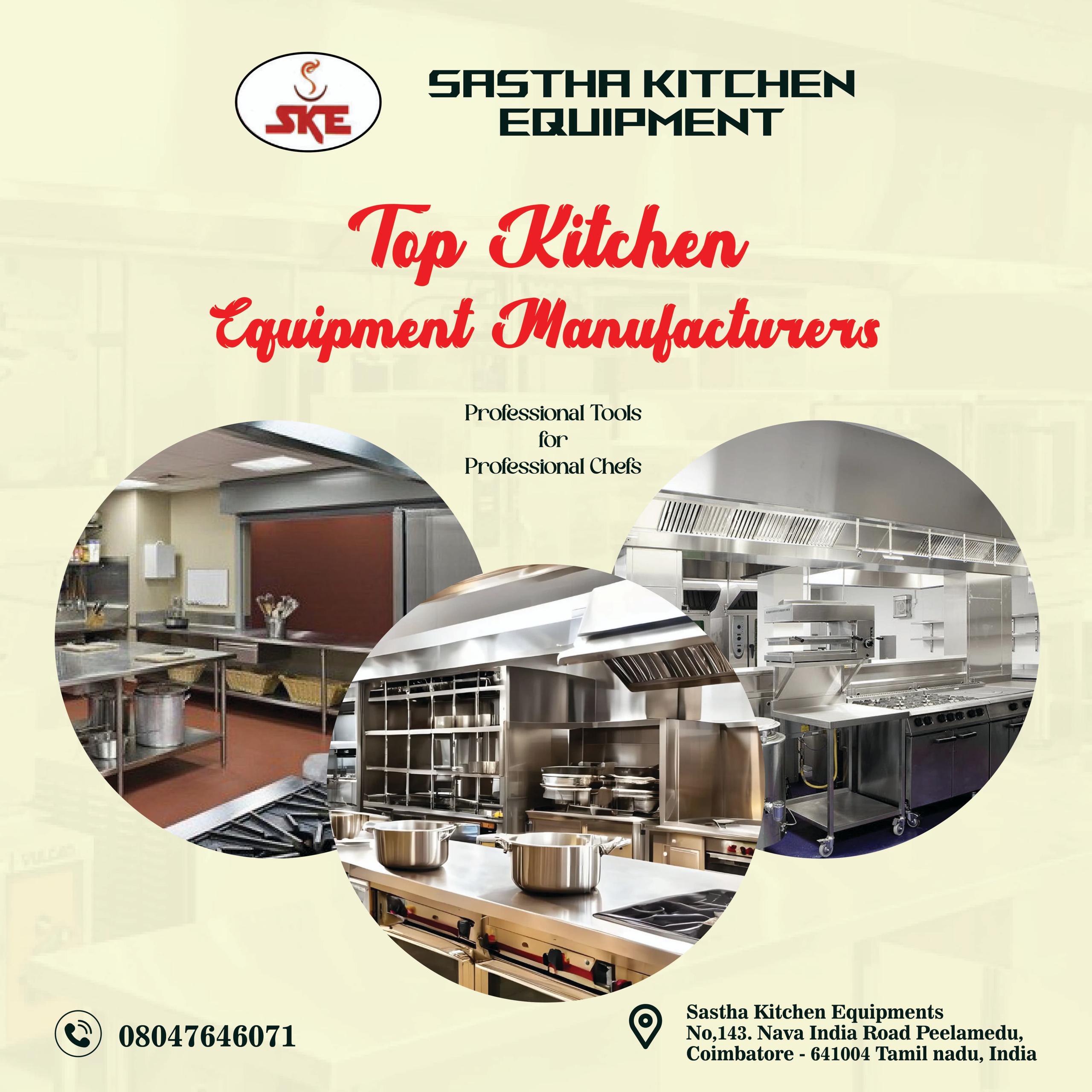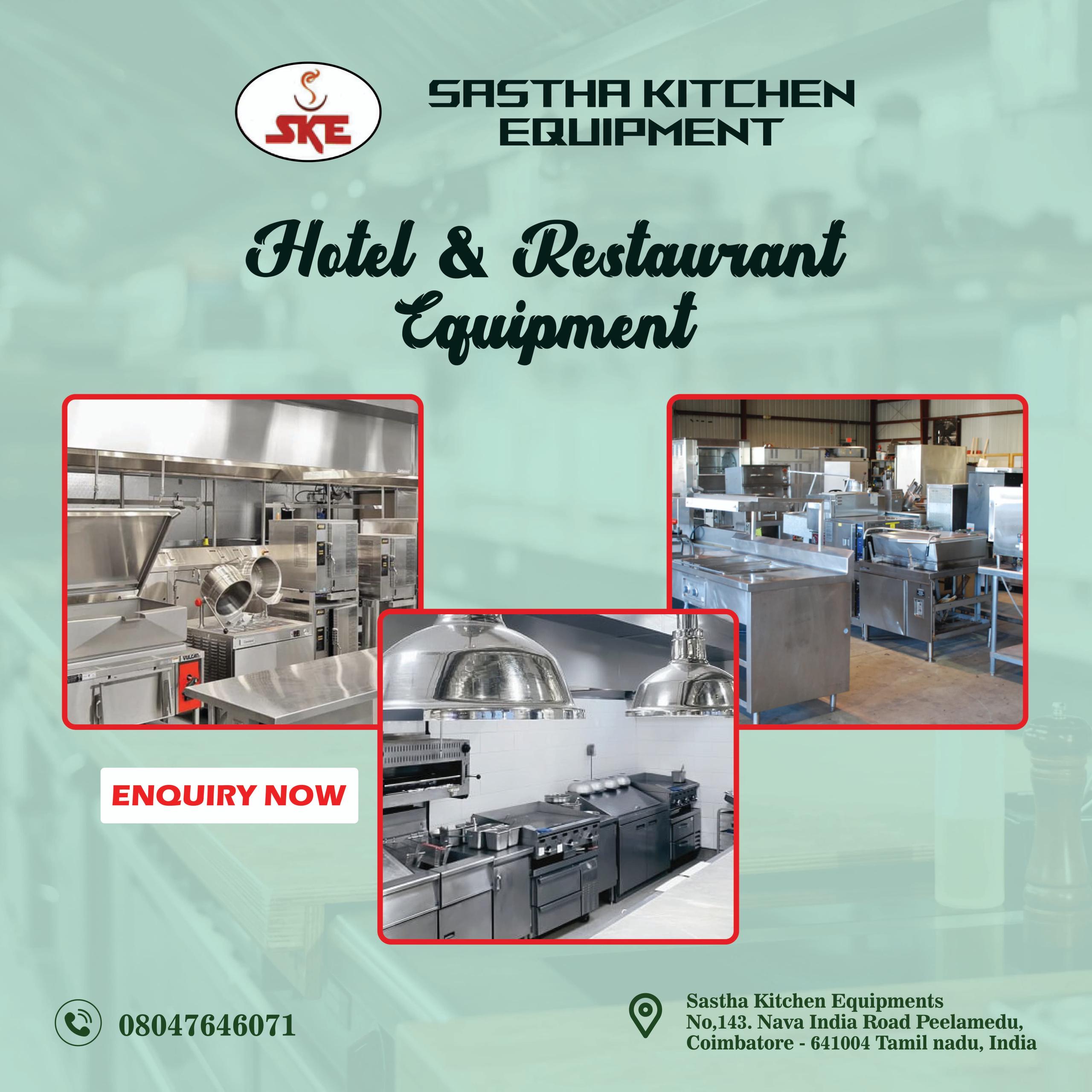 Sastha Kitchen is one of the best Kitchen Equipment Manufacturers in Coimbatore, offering quality and efficient solutions. As leading Commercial Kitchen Equipment Manufacturers in Coimbatore, we specialize in durable Steam Cooking Equipment Manufacturers in Coimbatore. Trusted for quality Kitchen Equipment in Coimbatore and reliable Hotel Equipment in Coimbatore.