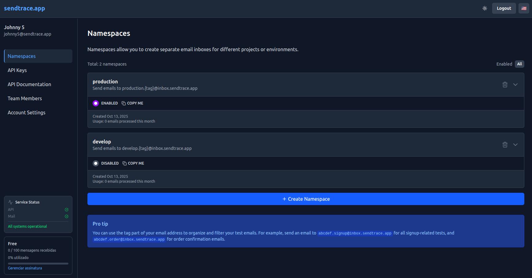 Built by a senior engineer, SendTrace focuses on simplicity and developer-friendly workflows. No complex setup, no risky exposure of real mailboxes, and no credit drain from unwanted messages.