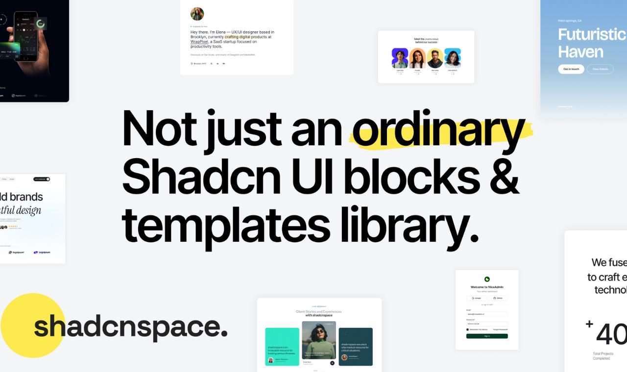 From startups and agencies to solo developers, ShadcnSpace empowers anyone to build world-class interfaces fast. You can focus on innovation while we handle the design foundation. With ShadcnSpace, your UI won’t just work - it will stand out.