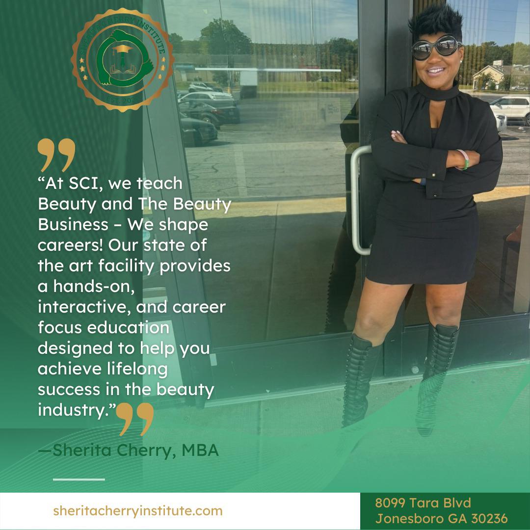 SHERITA CHERRY INSTITUTE (SCI) aims to give a well-rounded, inspirational, and career-shaping education so you can graduate with a skill set that paves the way for lifelong achievement in the field of beauty. This state-of-the-art school is located in Jonesboro, Ga about 10 minutes from Hartsfield-Jackson airport.
