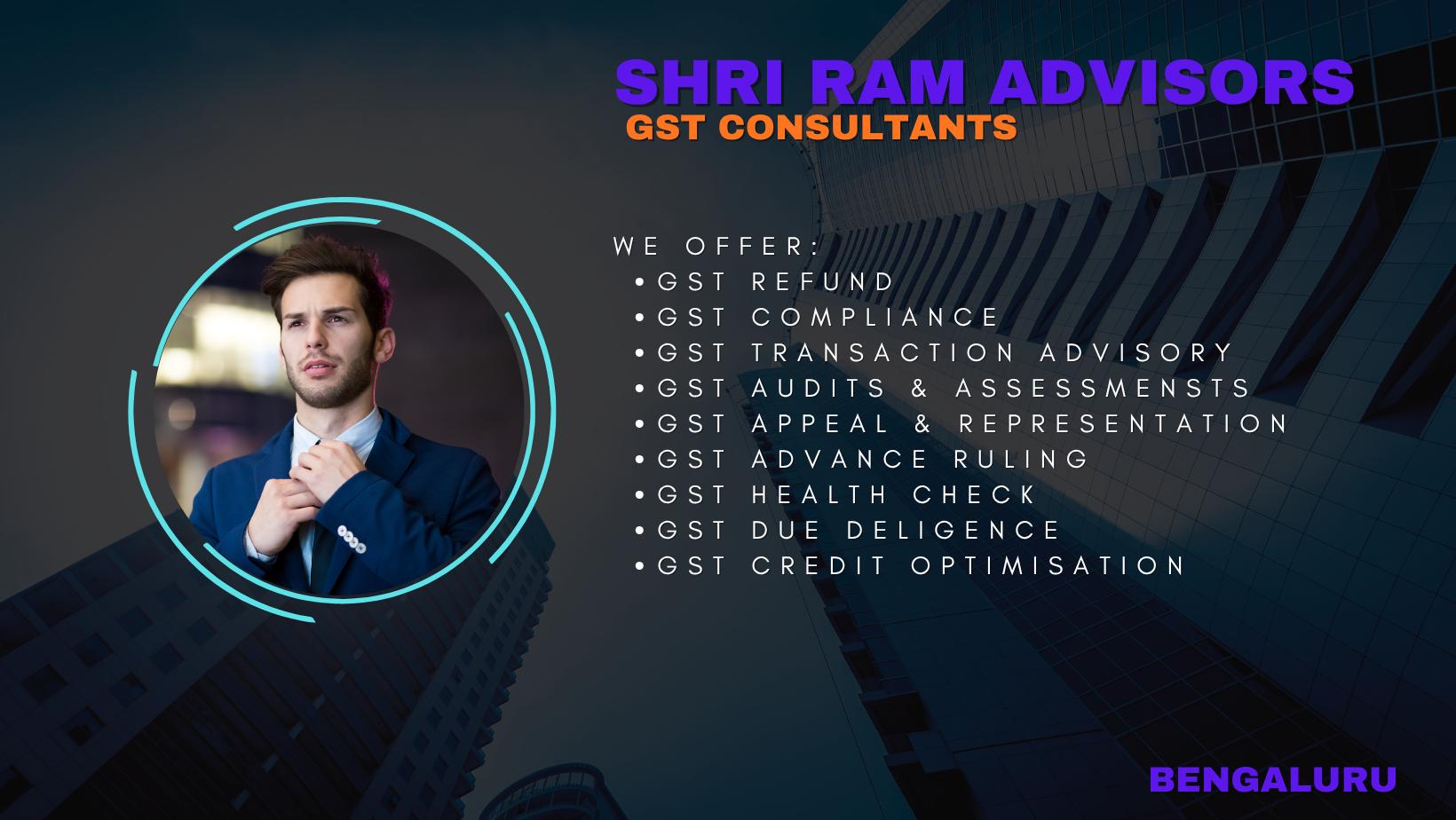 Shri Ram Advisors is a leading audit and GST consultancy firm based in Bangalore. We've built our reputation by providing accurate, timely, and affordable tax and business solutions to companies across Karnataka. Our team of qualified professionals understands the local business environment and keeps up with the latest regulatory changes to serve you better.