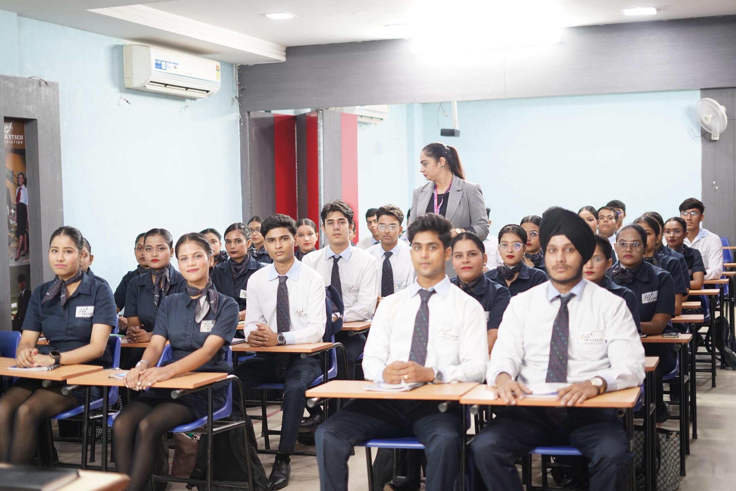 At Skytech, we offer industry-focused programs such as the Air Hostess Course, Cabin Crew Course, Airport Ground Staff Training, and Hospitality & Retail Management Course. Each program is designed to build confidence, communication, and professional excellence through hands-on practical training and expert mentorship.